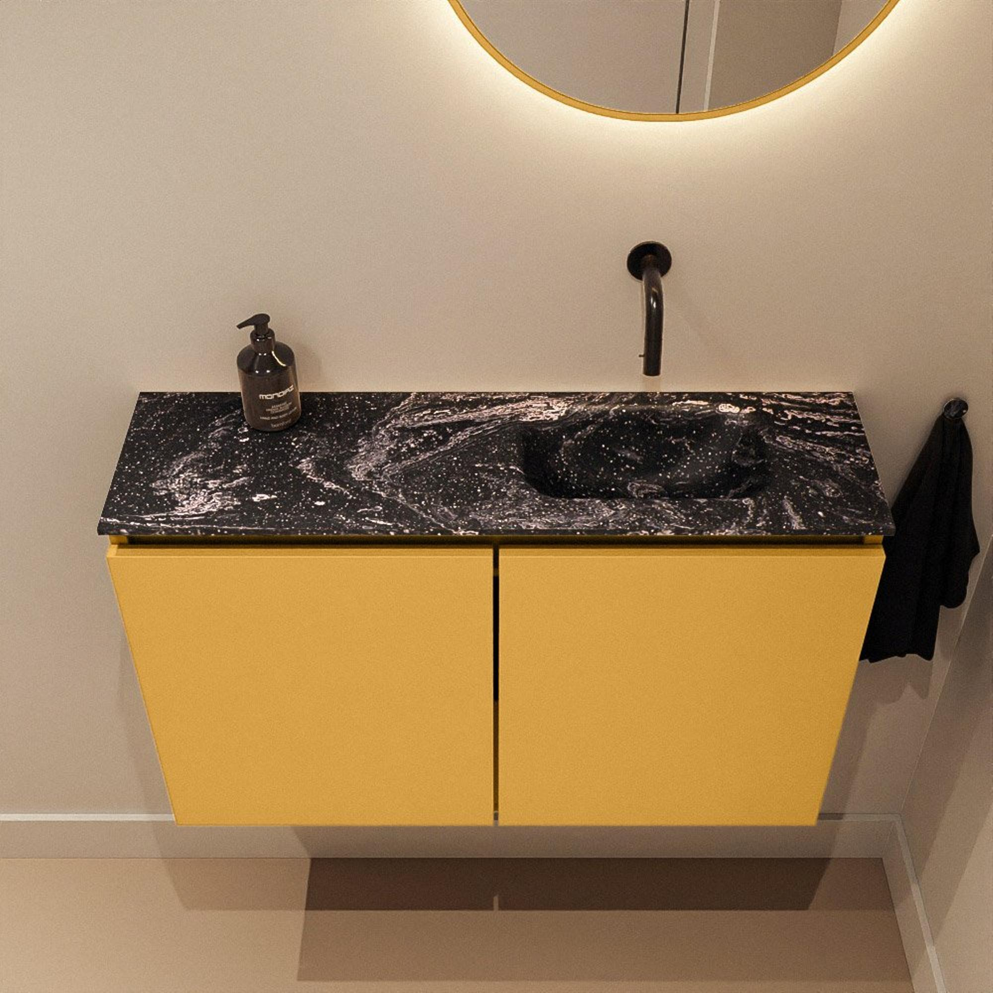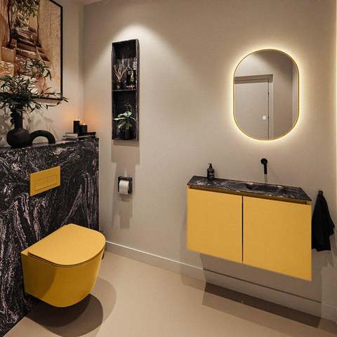 MONDIAZ TURE-DLUX 80cm toiletmeubel Ocher. EDEN wastafel Lava positie rechts. Zonder kraangat.