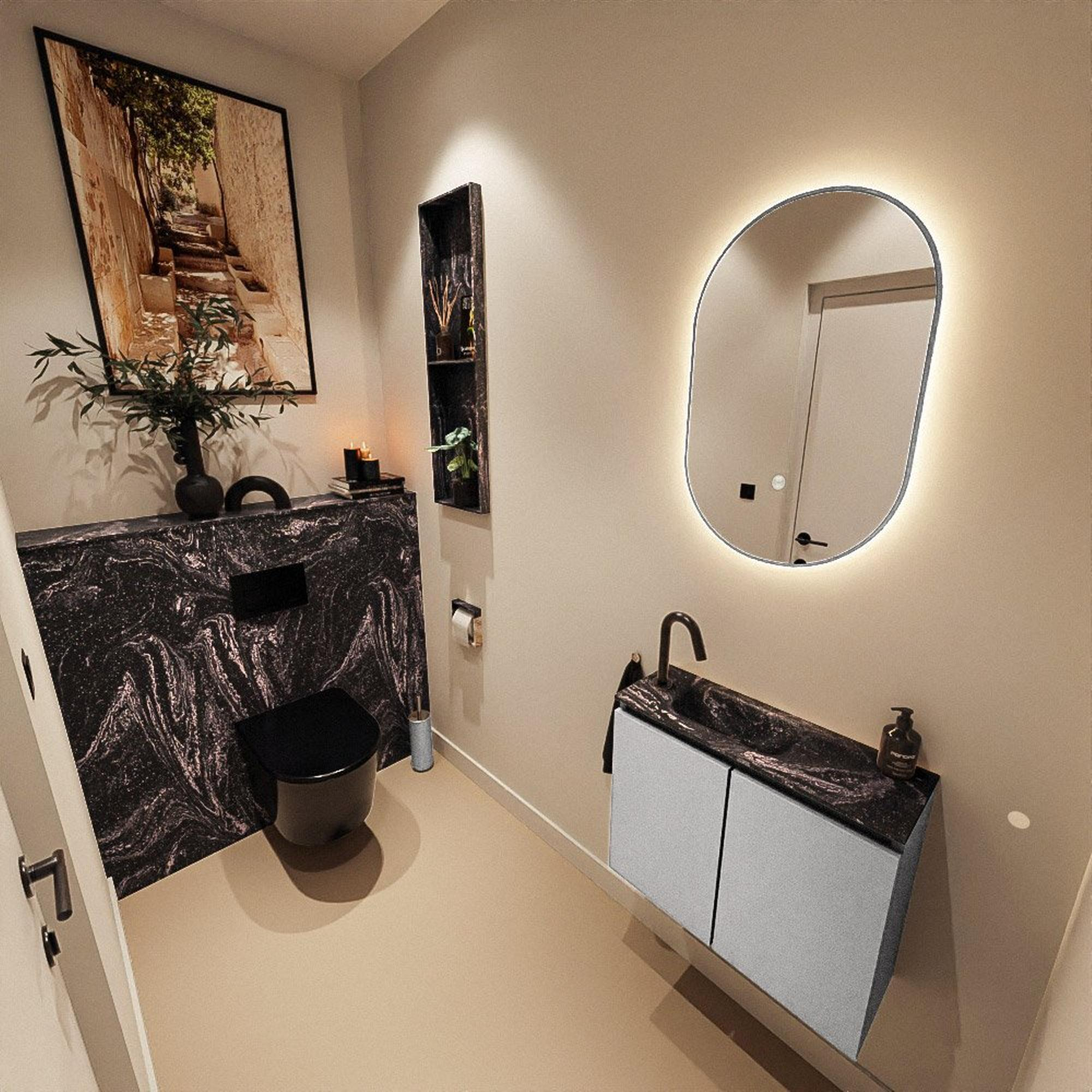MONDIAZ TURE-DLUX 60cm toiletmeubel Plata. EDEN wastafel Lava positie links. Met 1 kraangat.