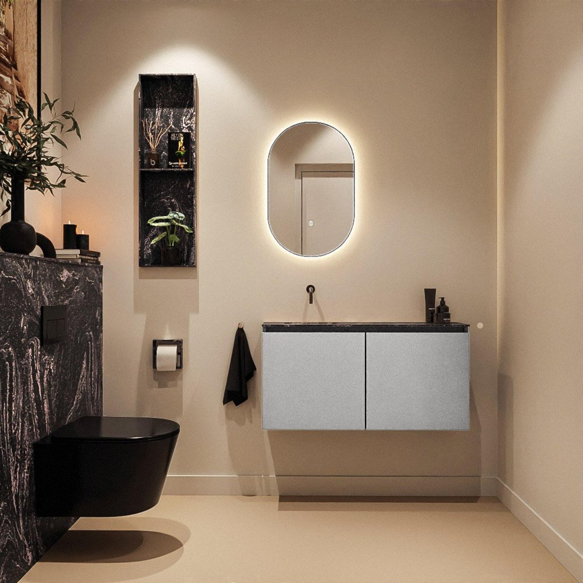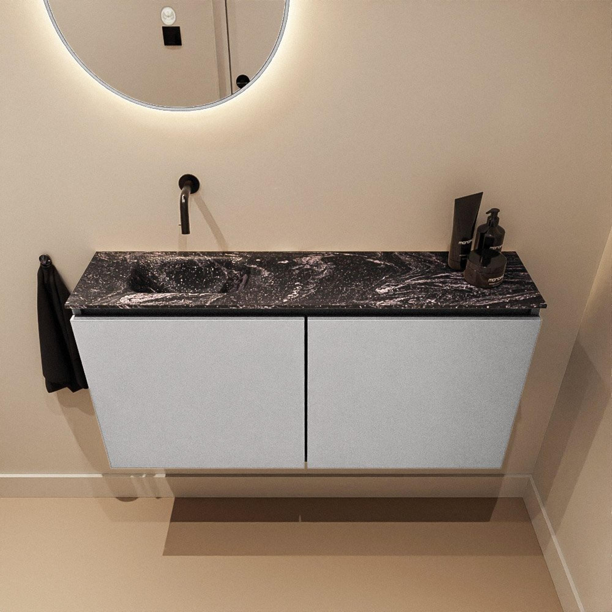 MONDIAZ TURE-DLUX 100cm toiletmeubel Plata. EDEN wastafel Lava positie links. Zonder kraangat.