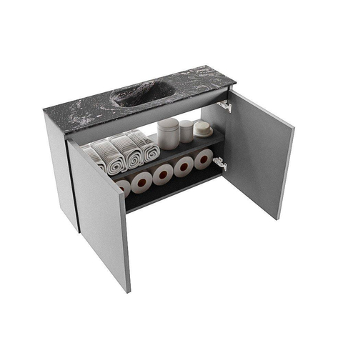 MONDIAZ TURE-DLUX 80cm toiletmeubel Plata. EDEN wastafel Lava positie midden. Zonder kraangat.