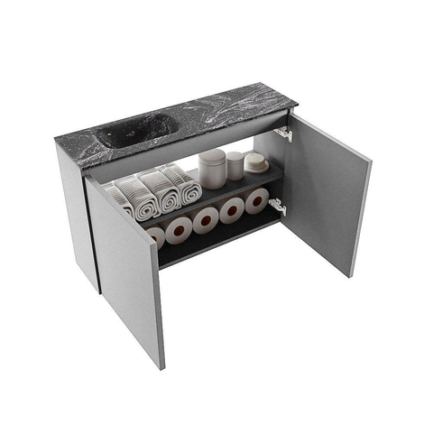 MONDIAZ TURE-DLUX 80cm toiletmeubel Plata. EDEN wastafel Lava positie links. Zonder kraangat.