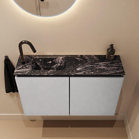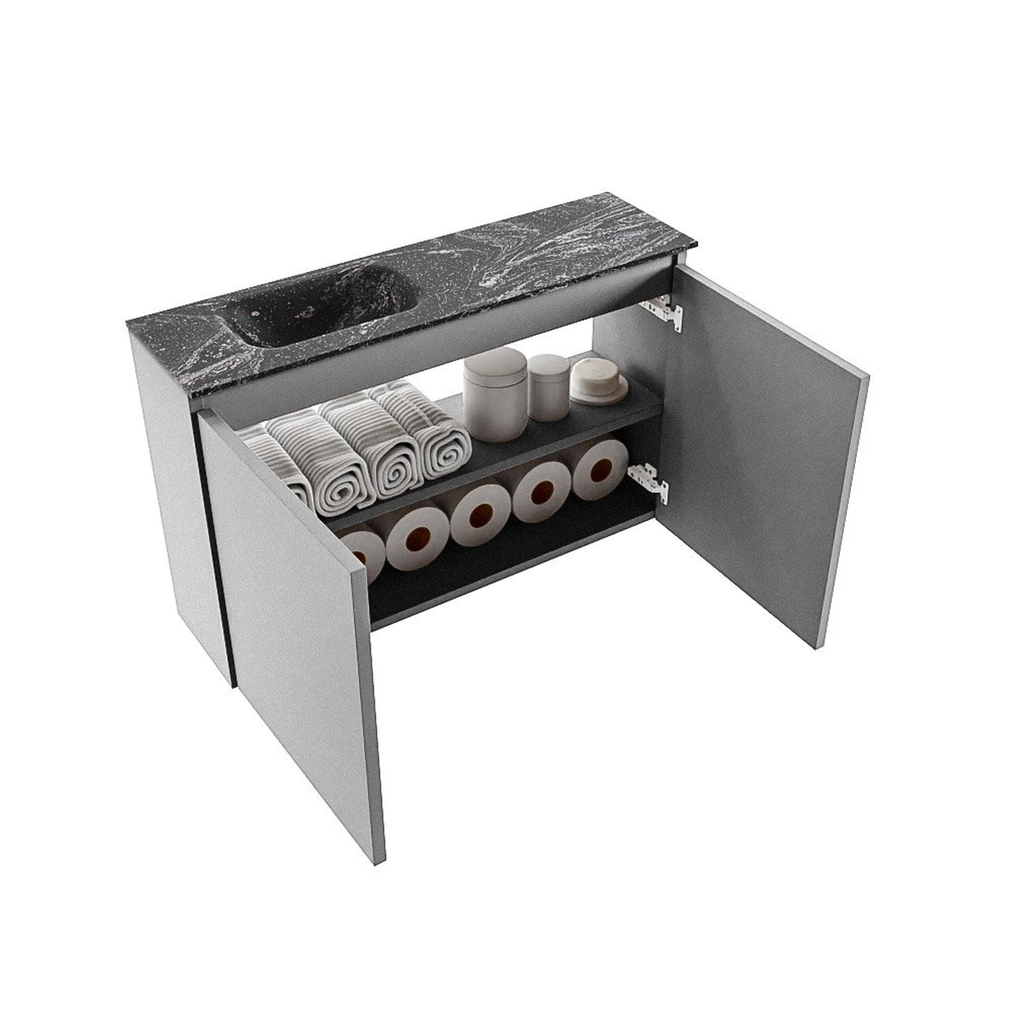 MONDIAZ TURE-DLUX 80cm toiletmeubel Plata. EDEN wastafel Lava positie links. Met 1 kraangat.