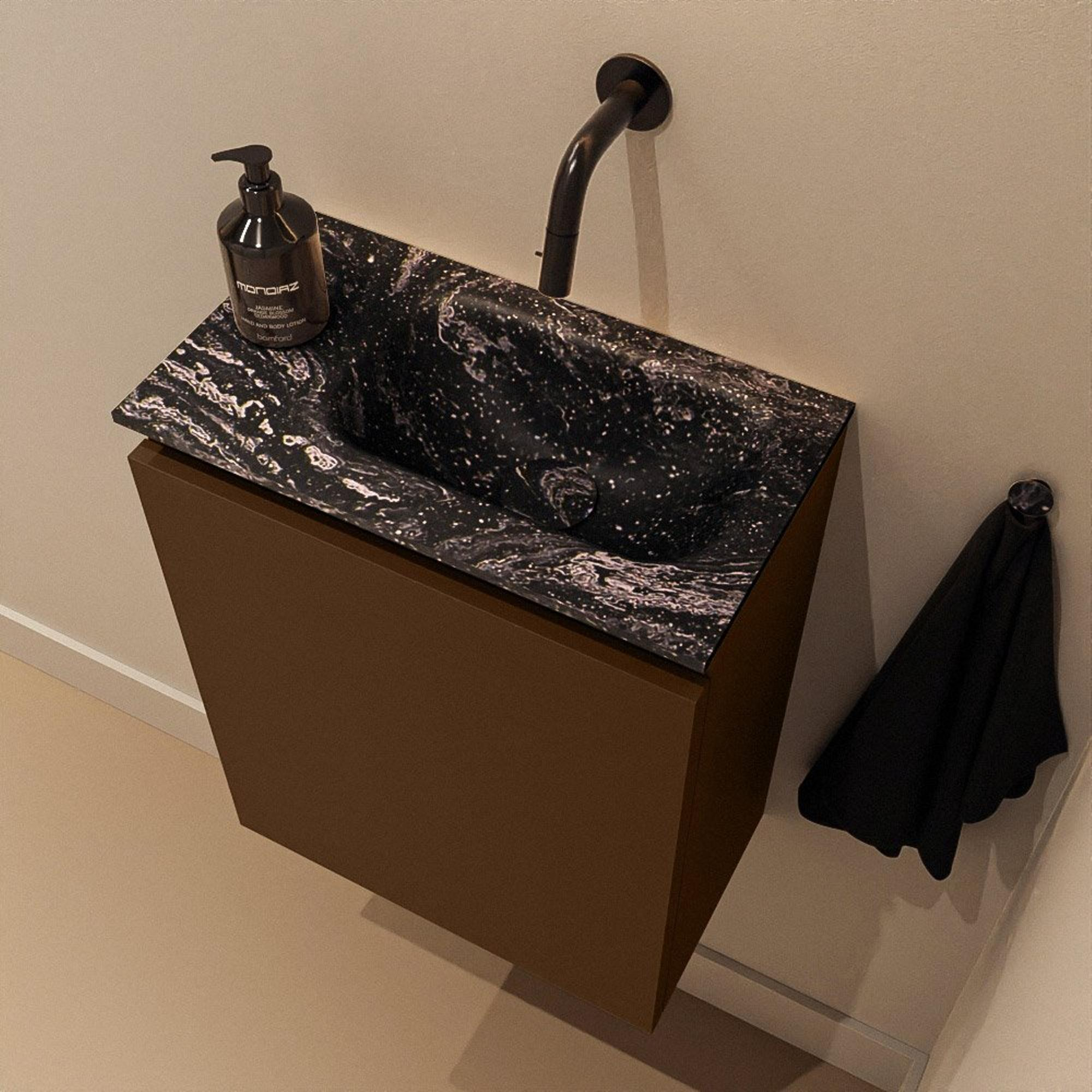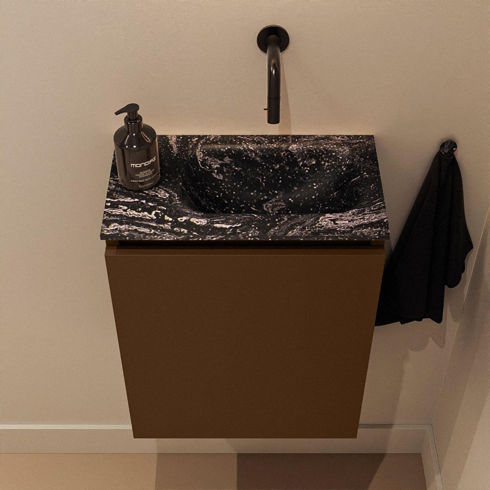 MONDIAZ TURE-DLUX 40cm toiletmeubel Rust. EDEN wastafel Lava positie rechts. Zonder kraangat.