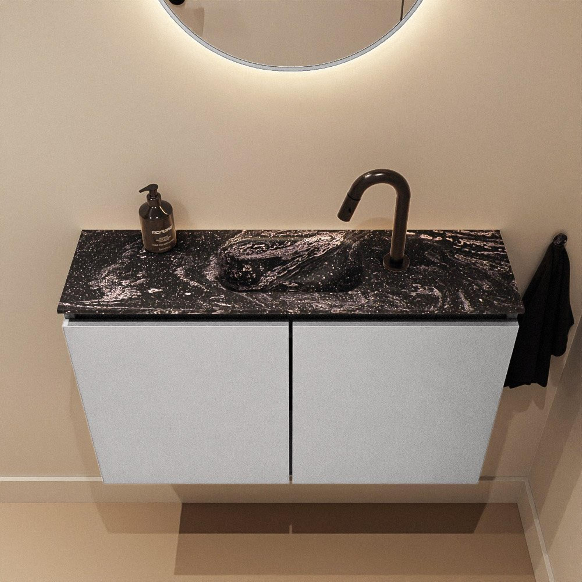 MONDIAZ TURE-DLUX 80cm toiletmeubel Plata. EDEN wastafel Lava positie midden. Met 1 kraangat.