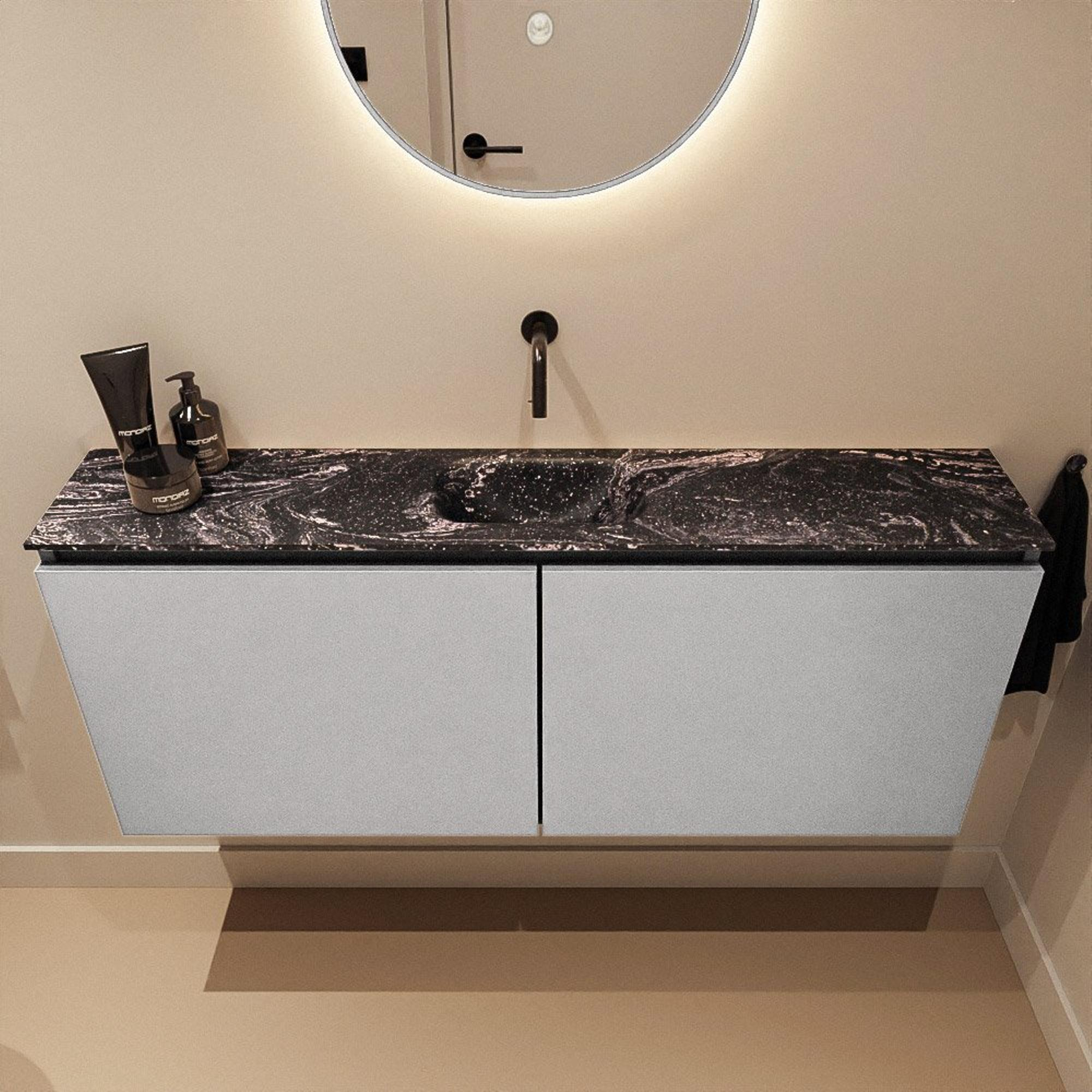MONDIAZ TURE-DLUX 120cm toiletmeubel Plata. EDEN wastafel Lava positie midden. Zonder kraangat.