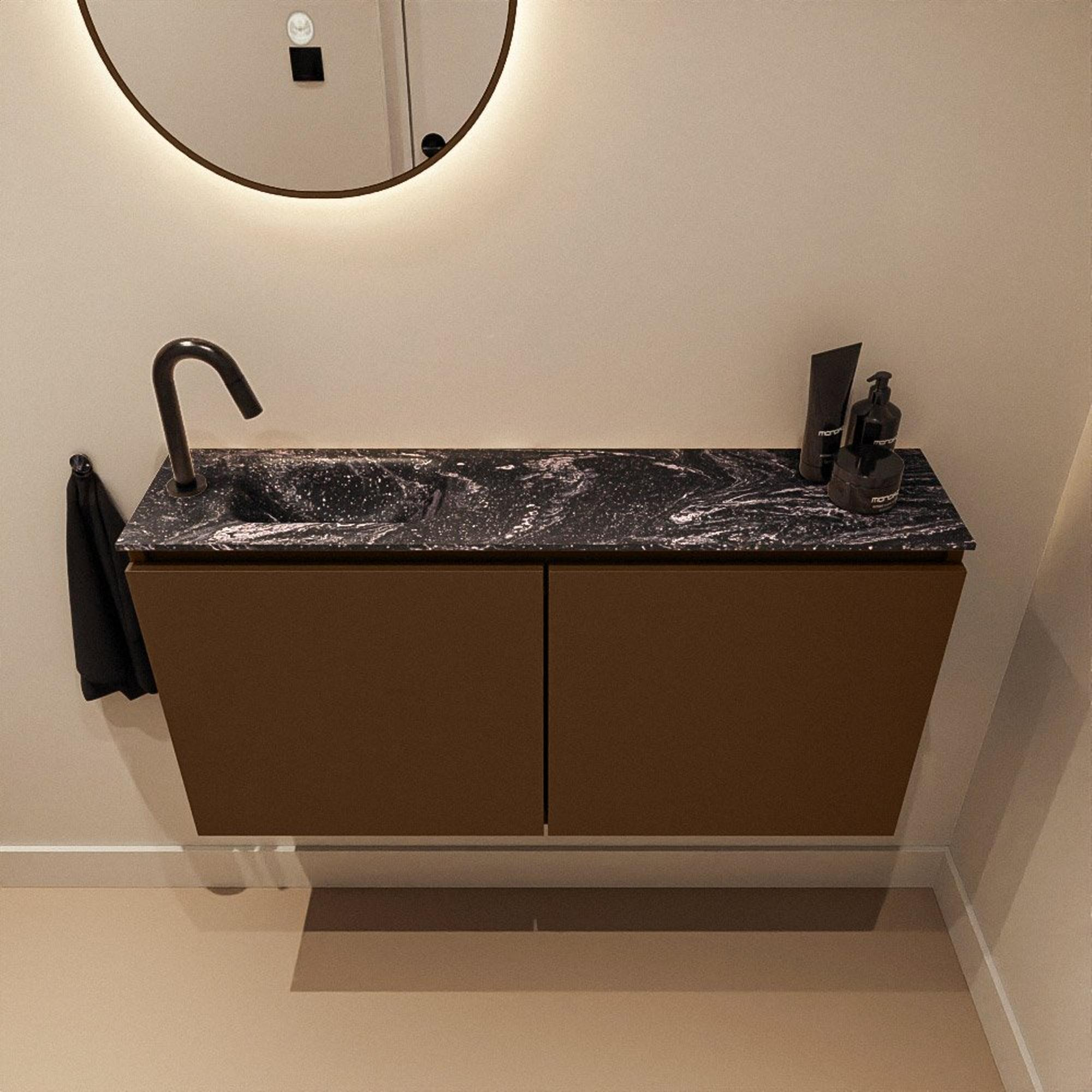 MONDIAZ TURE-DLUX 100cm toiletmeubel Rust. EDEN wastafel Lava positie links. Met 1 kraangat.