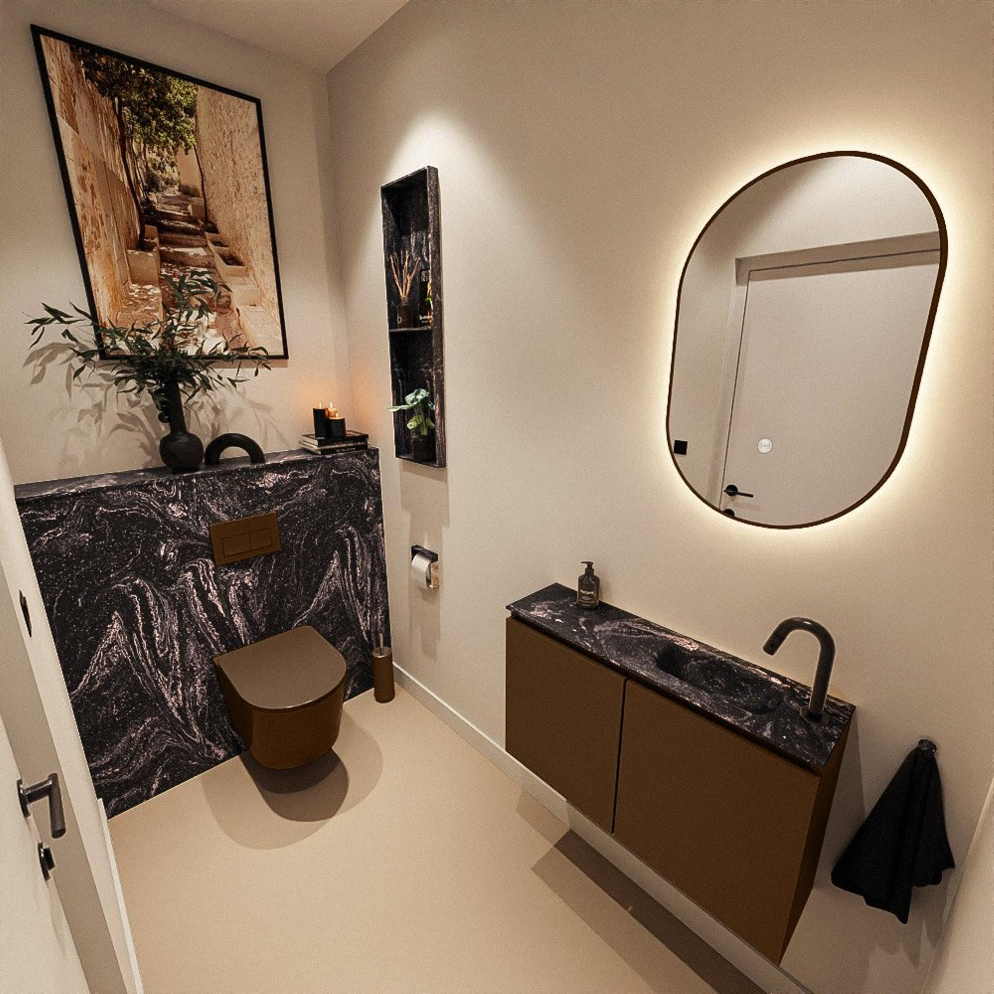 MONDIAZ TURE-DLUX 80cm toiletmeubel Rust. EDEN wastafel Lava positie rechts. Met 1 kraangat.