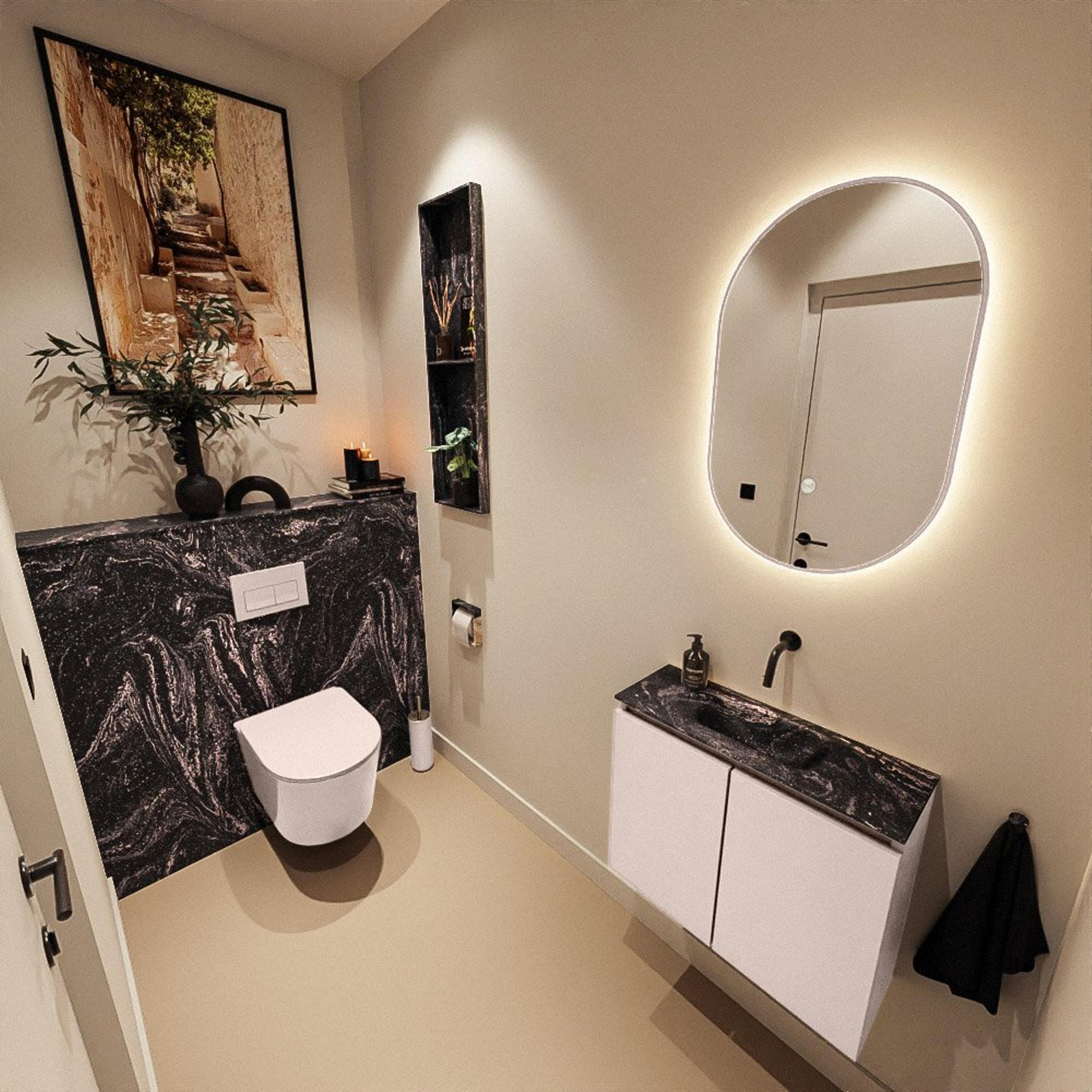 MONDIAZ TURE-DLUX 60cm toiletmeubel Rosee. EDEN wastafel Lava positie midden. Zonder kraangat.
