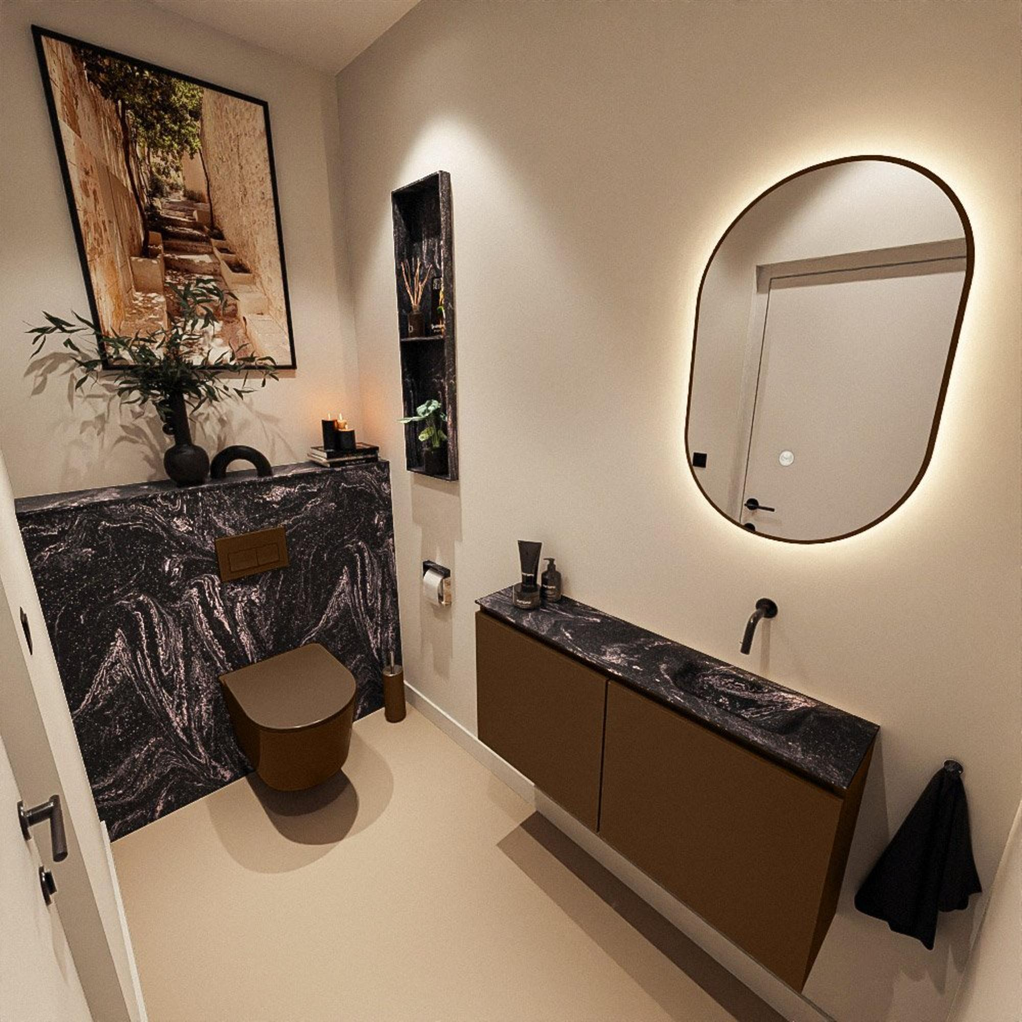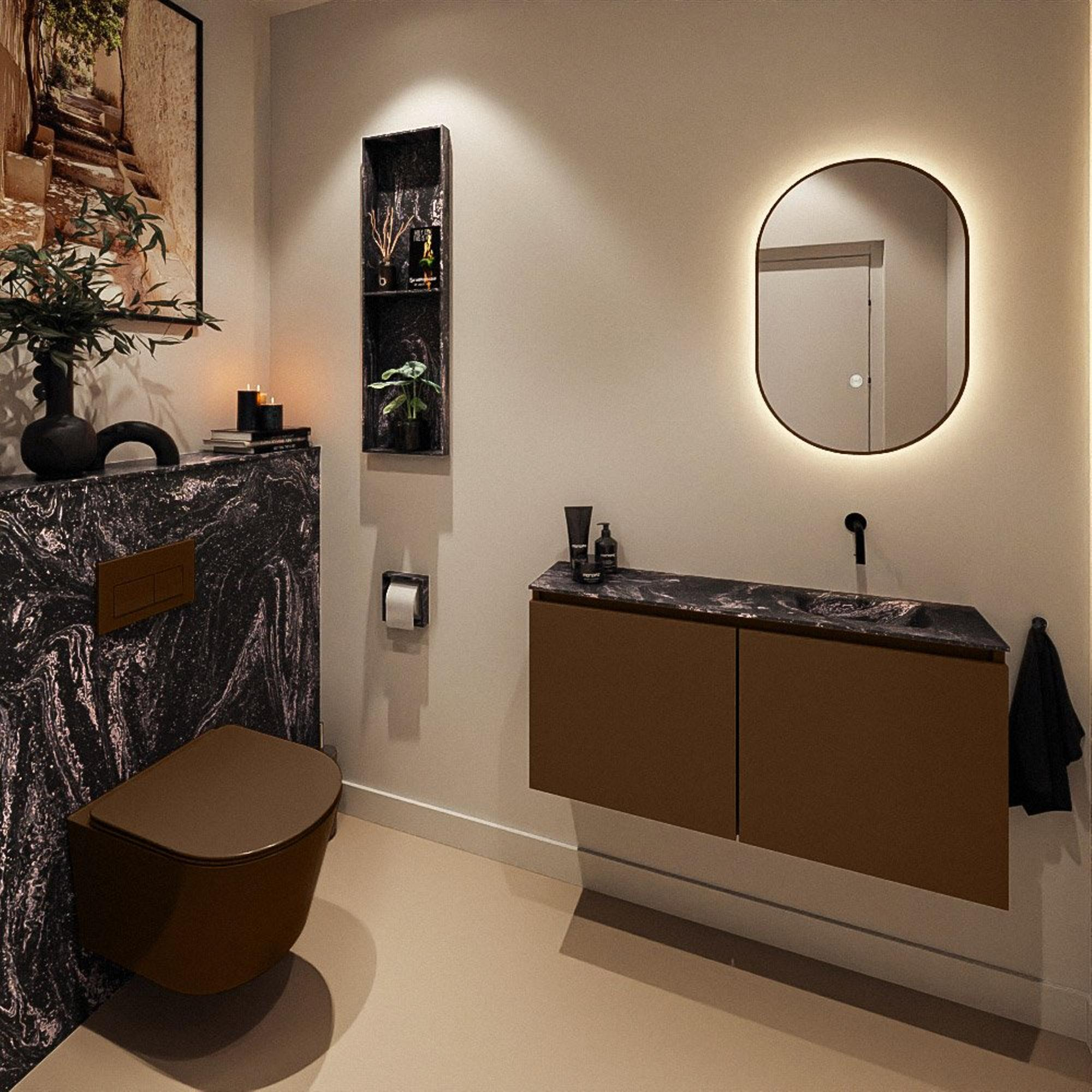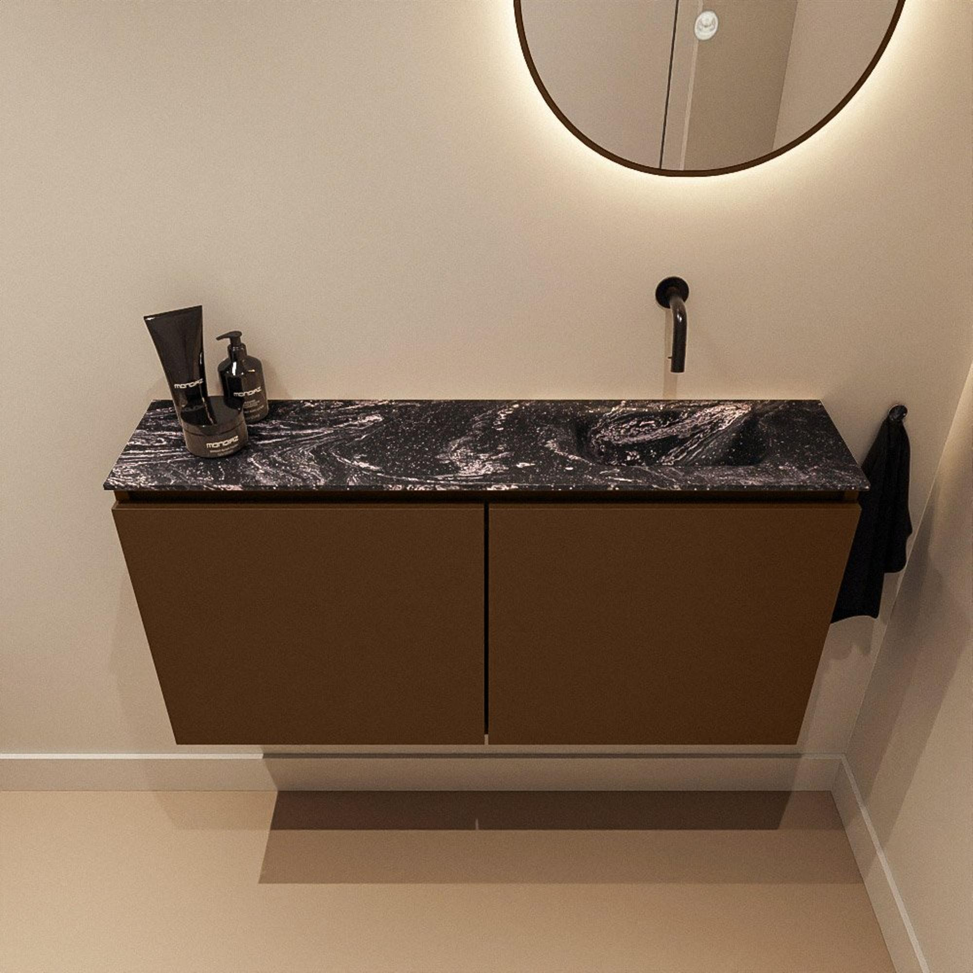 MONDIAZ TURE-DLUX 100cm toiletmeubel Rust. EDEN wastafel Lava positie rechts. Zonder kraangat.