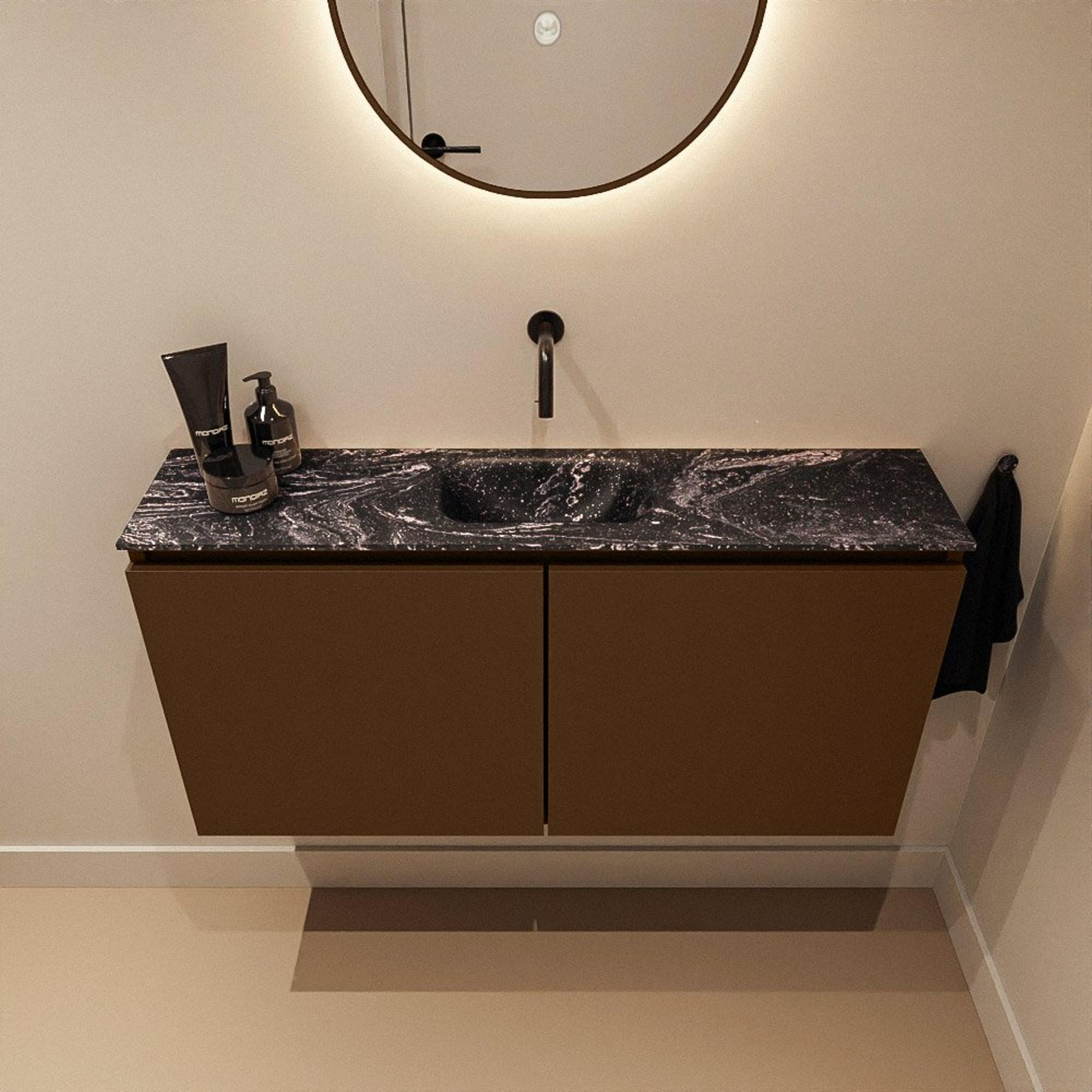 MONDIAZ TURE-DLUX 100cm toiletmeubel Rust. EDEN wastafel Lava positie midden. Zonder kraangat.