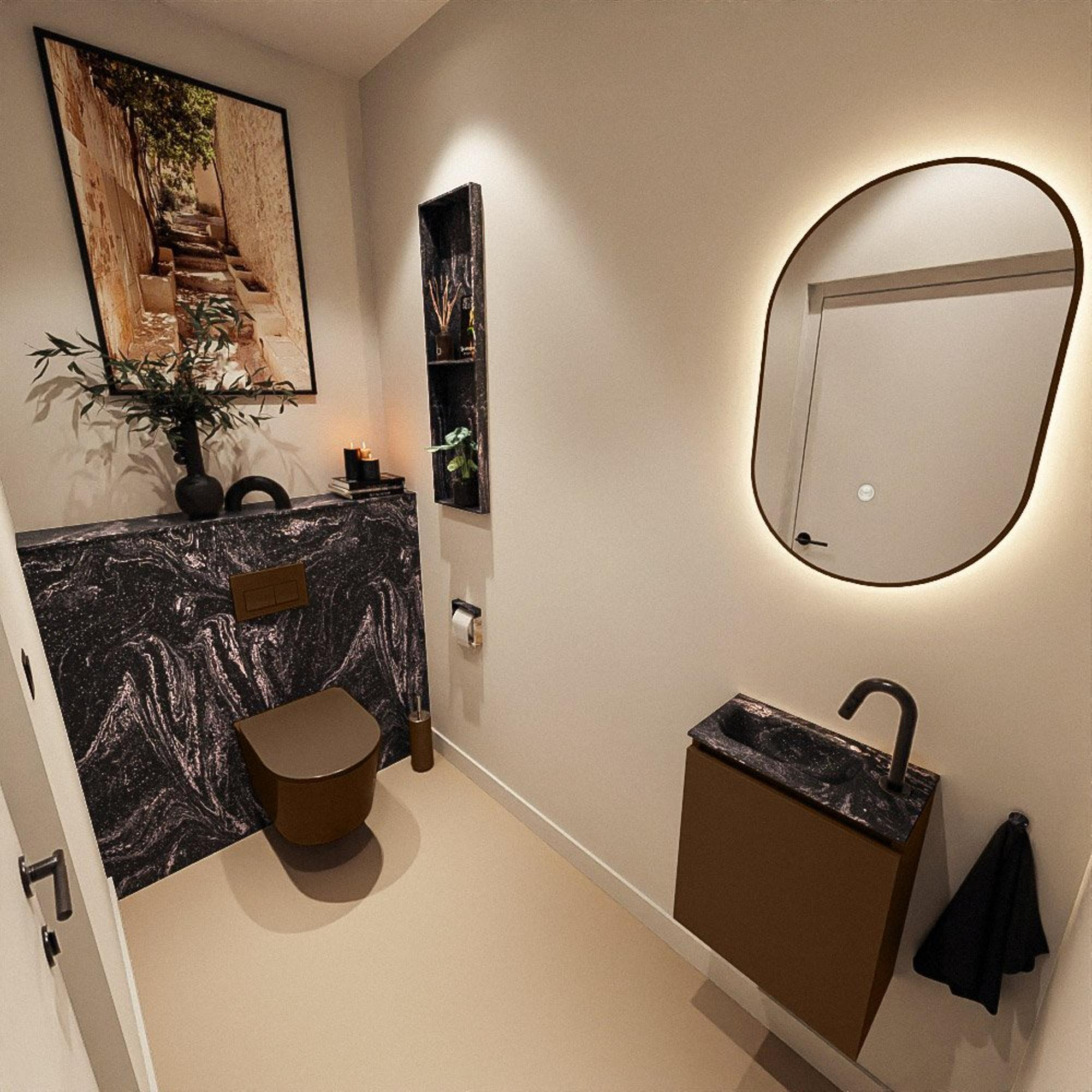 MONDIAZ TURE-DLUX 40cm toiletmeubel Rust. EDEN wastafel Lava positie links. Met 1 kraangat.