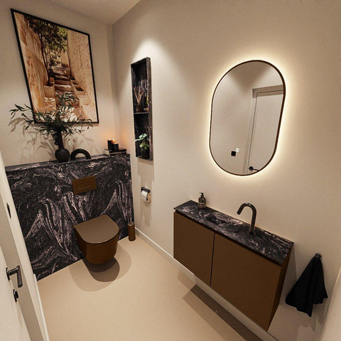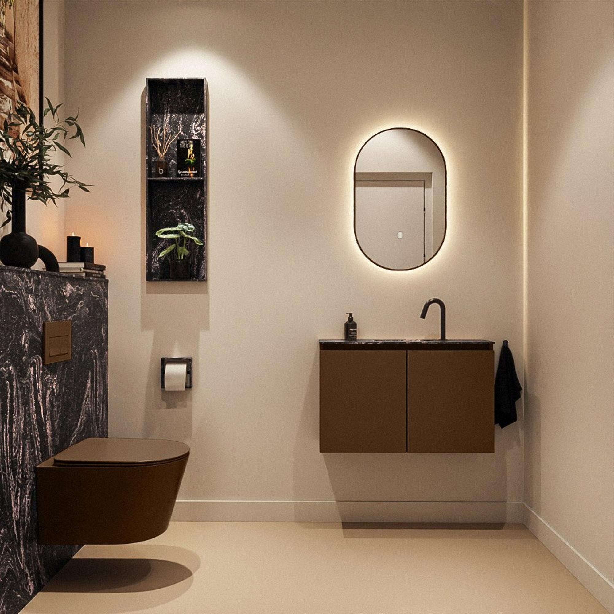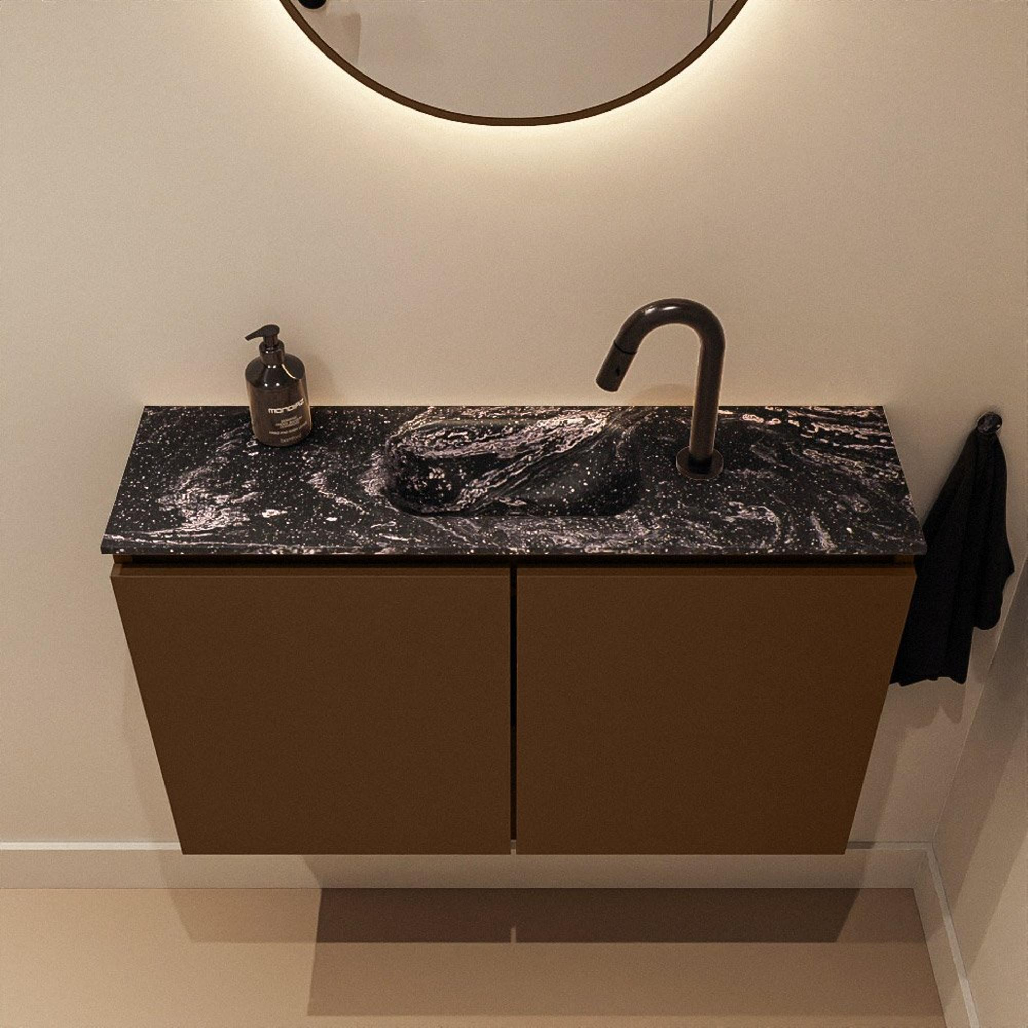 MONDIAZ TURE-DLUX 80cm toiletmeubel Rust. EDEN wastafel Lava positie midden. Met 1 kraangat.
