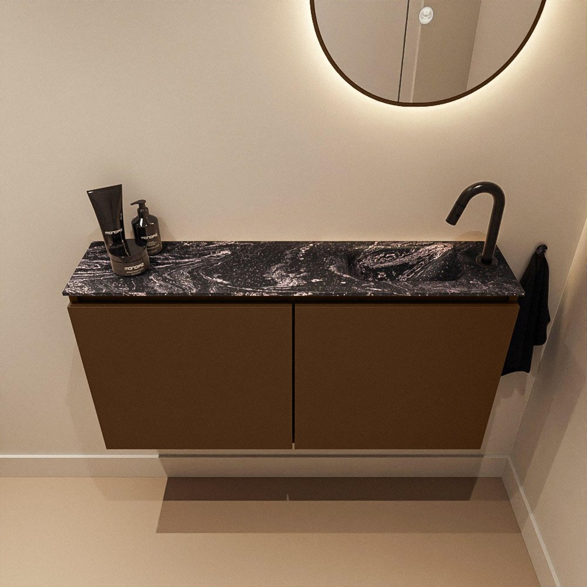 MONDIAZ TURE-DLUX 100cm toiletmeubel Rust. EDEN wastafel Lava positie rechts. Met 1 kraangat.