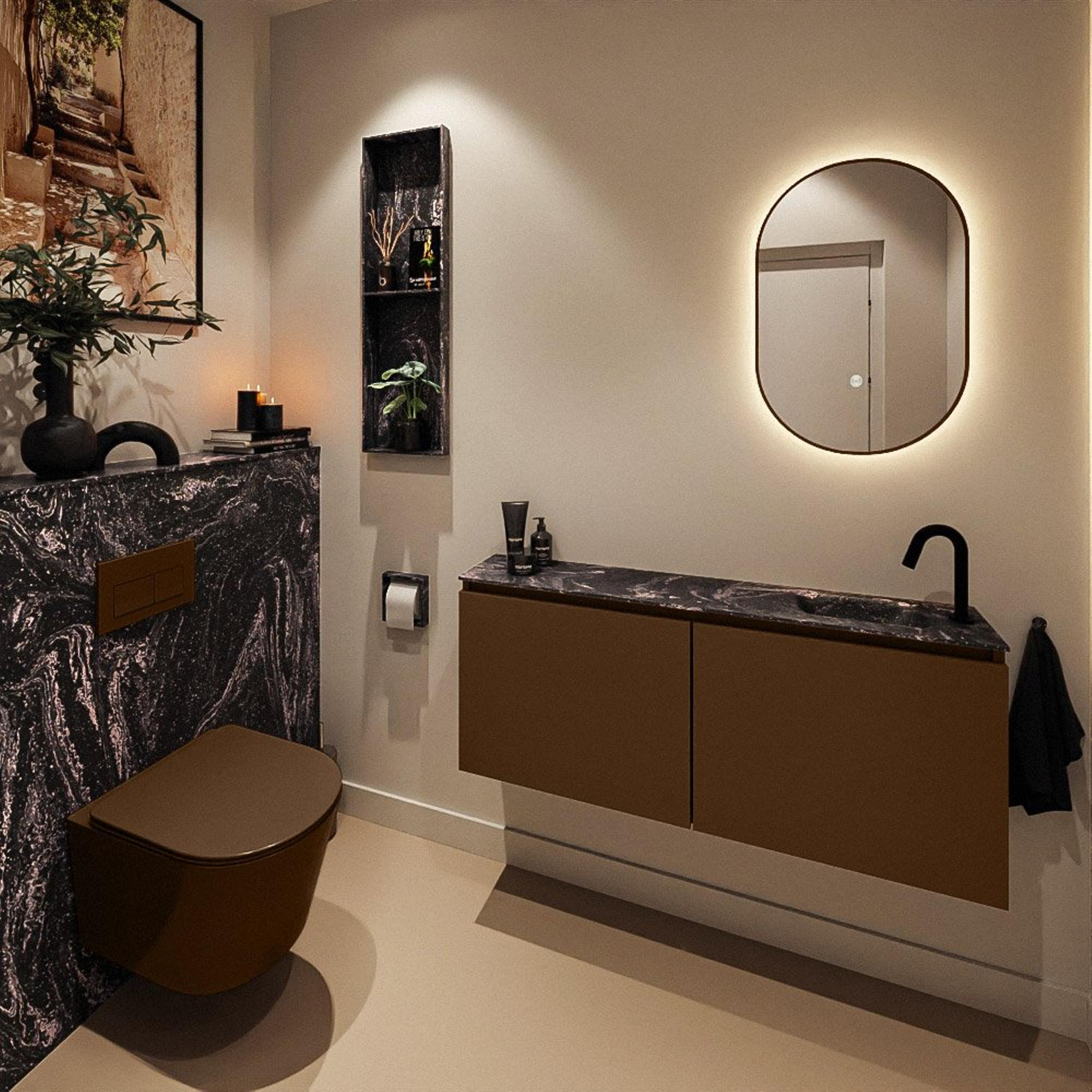 MONDIAZ TURE-DLUX 120cm toiletmeubel Rust. EDEN wastafel Lava positie rechts. Met 1 kraangat.