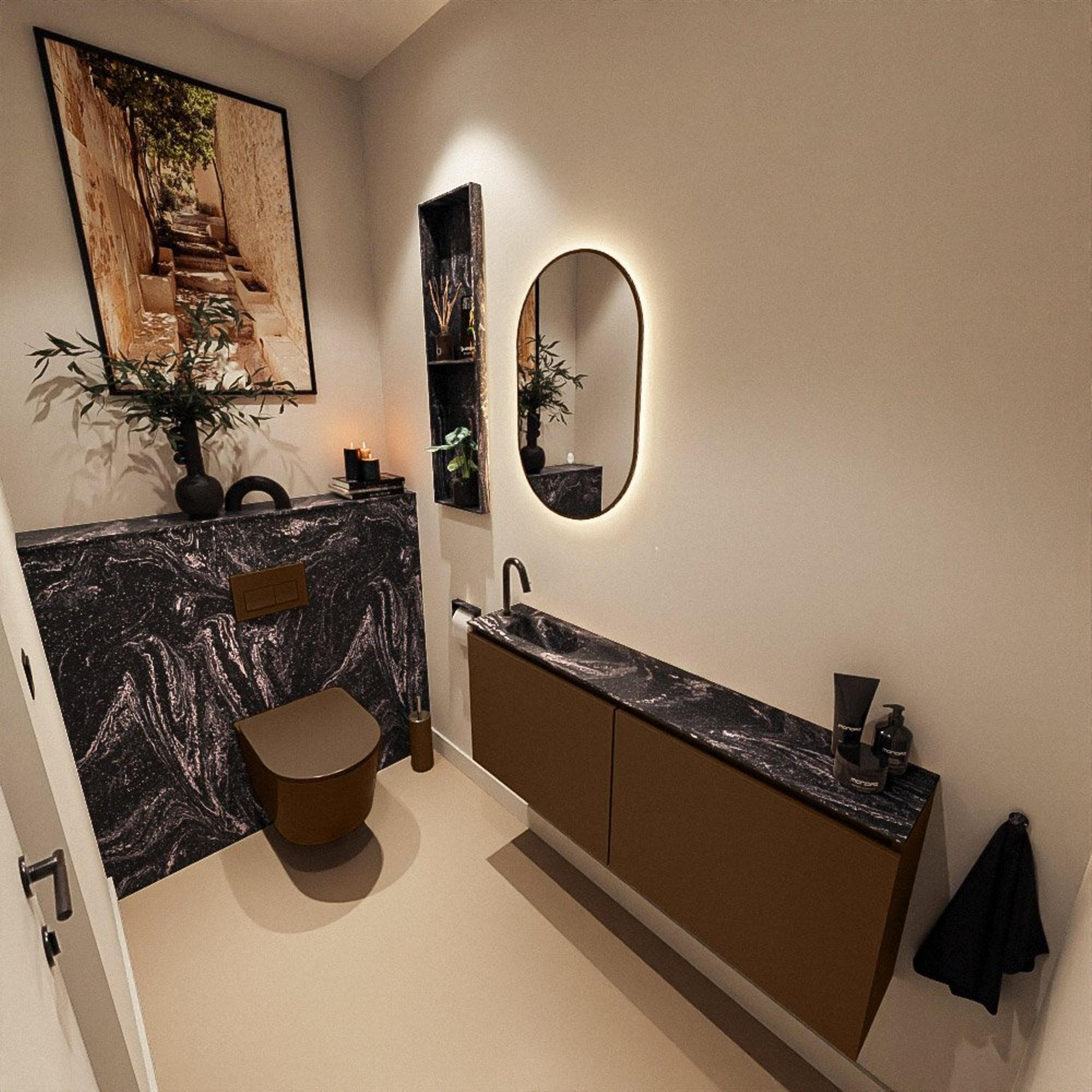 MONDIAZ TURE-DLUX 120cm toiletmeubel Rust. EDEN wastafel Lava positie links. Met 1 kraangat.