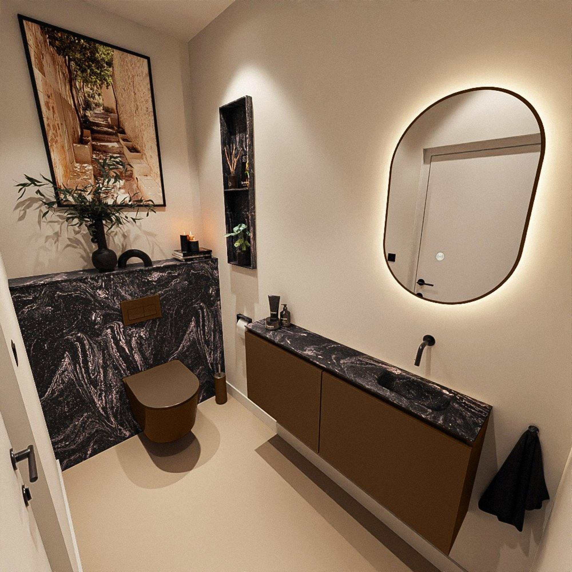 MONDIAZ TURE-DLUX 120cm toiletmeubel Rust. EDEN wastafel Lava positie rechts. Zonder kraangat.