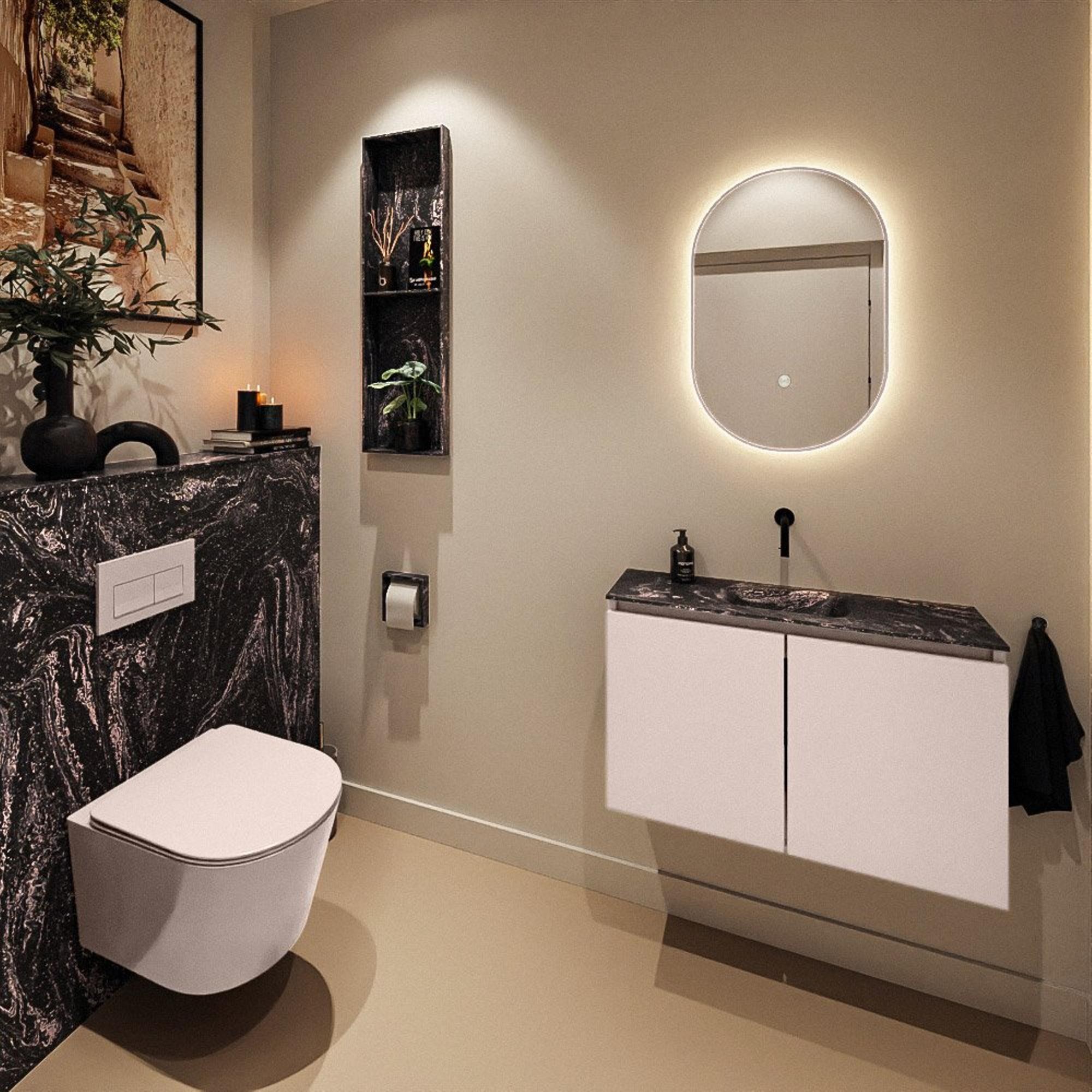MONDIAZ TURE-DLUX 80cm toiletmeubel Rosee. EDEN wastafel Lava positie midden. Zonder kraangat.