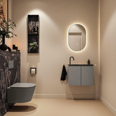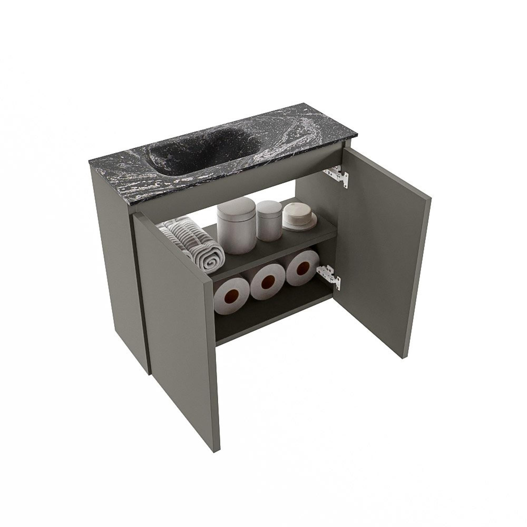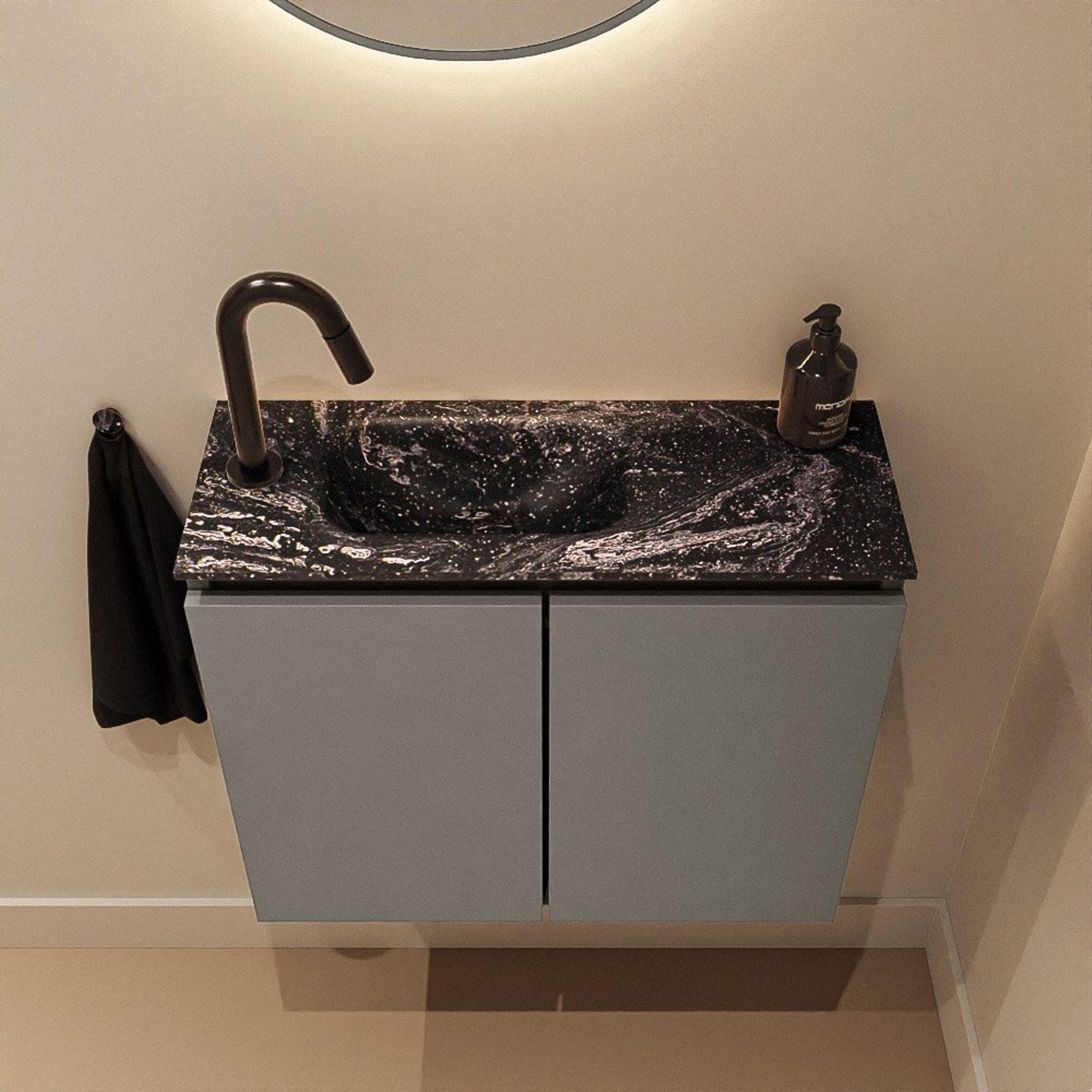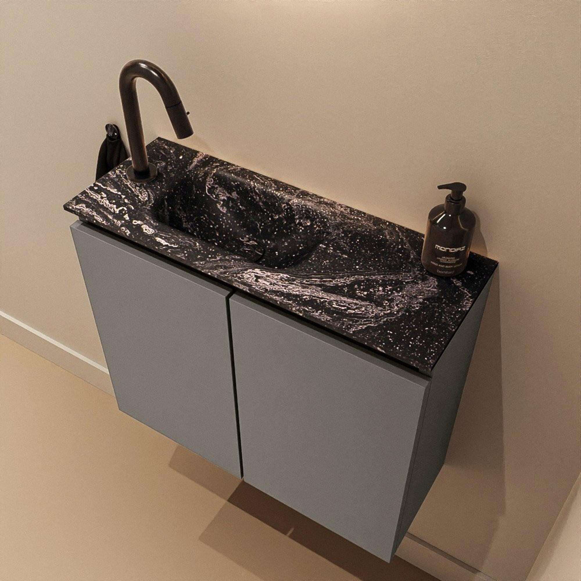 MONDIAZ TURE-DLUX 60cm toiletmeubel Smoke. EDEN wastafel Lava positie links. Met 1 kraangat.