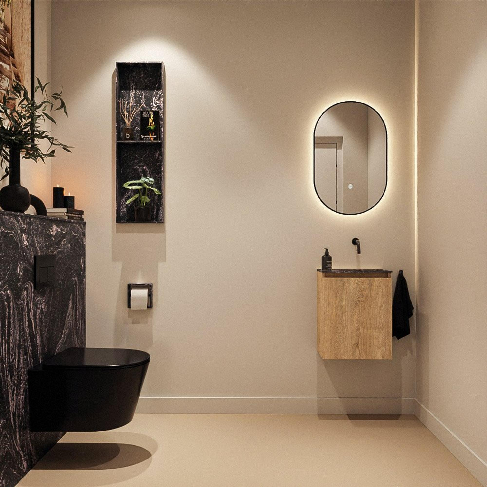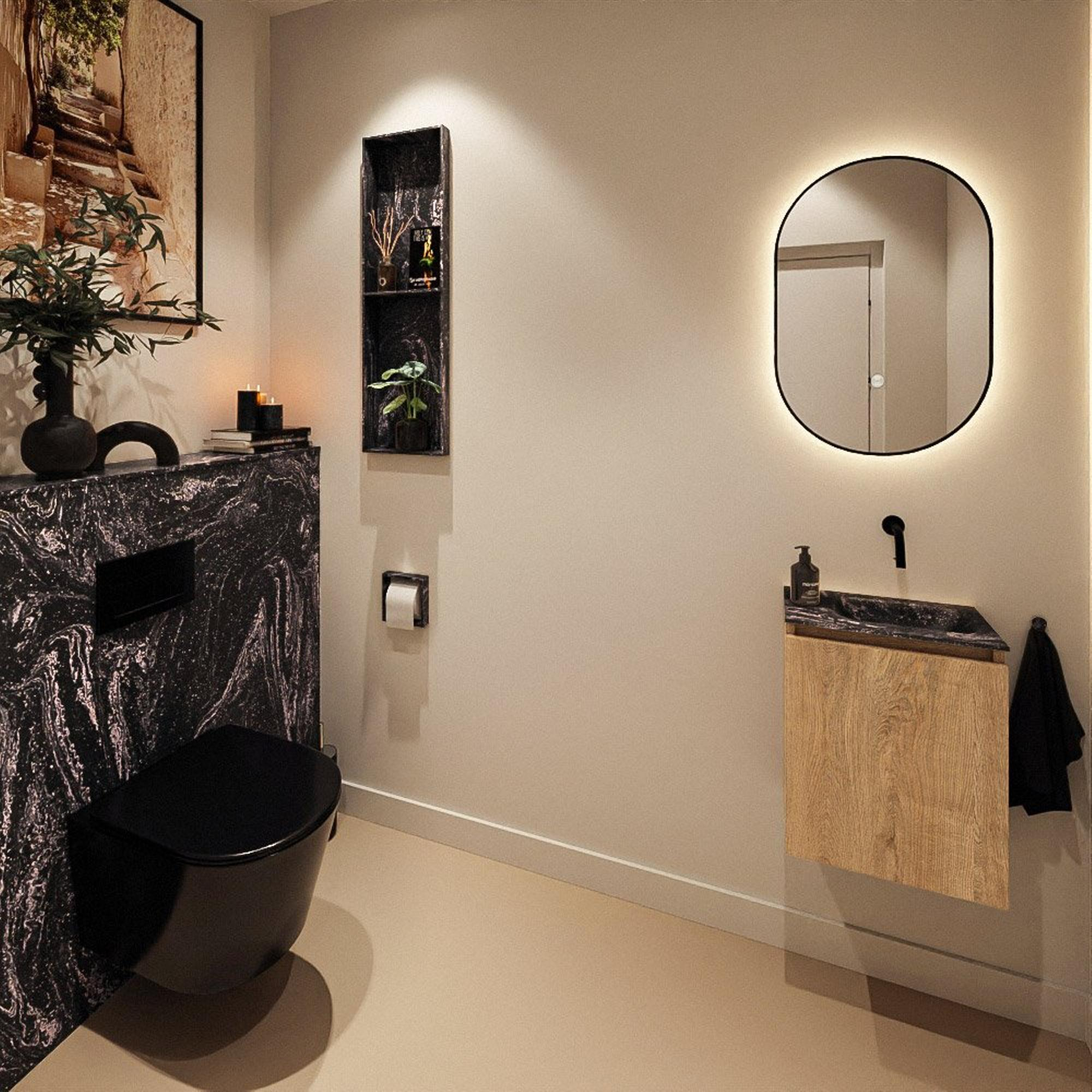 MONDIAZ TURE-DLUX 40cm toiletmeubel Washed Oak. EDEN wastafel Lava positie rechts. Zonder kraangat.