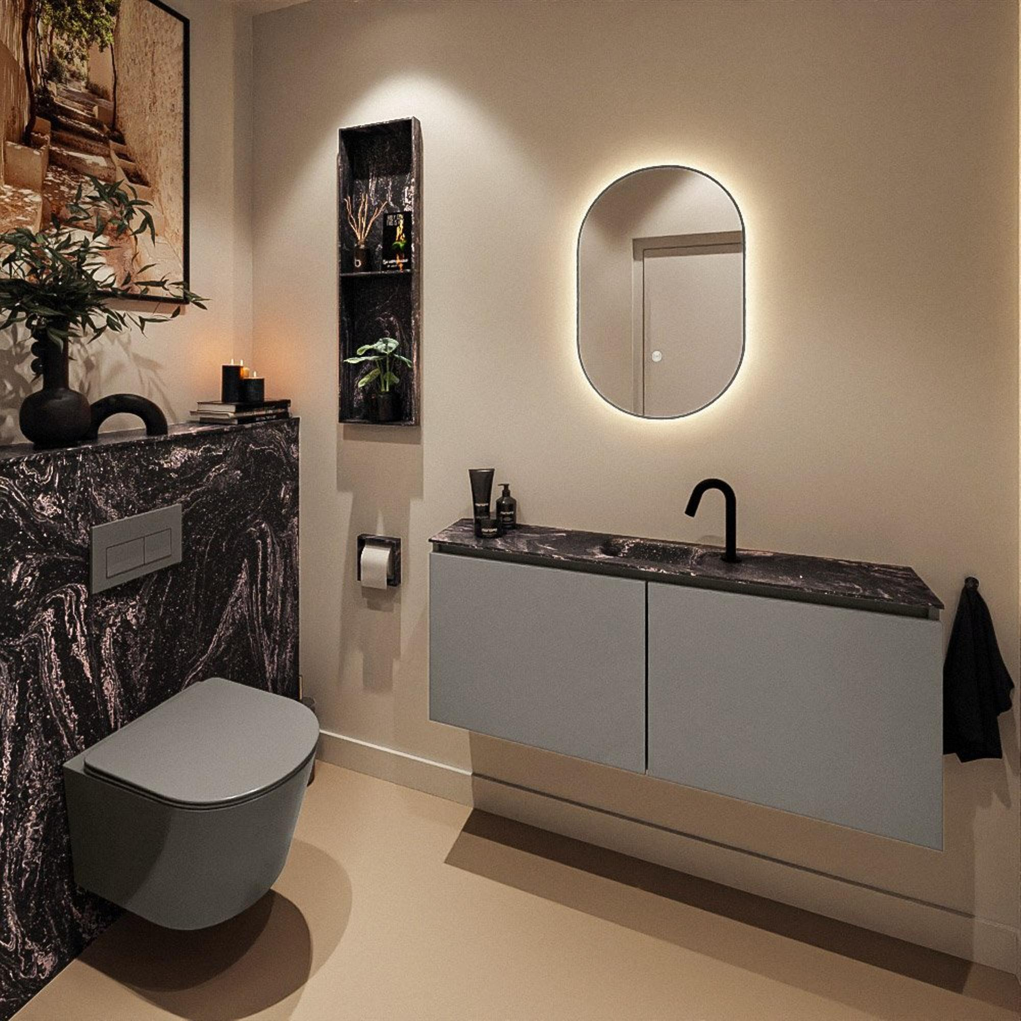 MONDIAZ TURE-DLUX 120cm toiletmeubel Smoke. EDEN wastafel Lava positie midden. Met 1 kraangat.