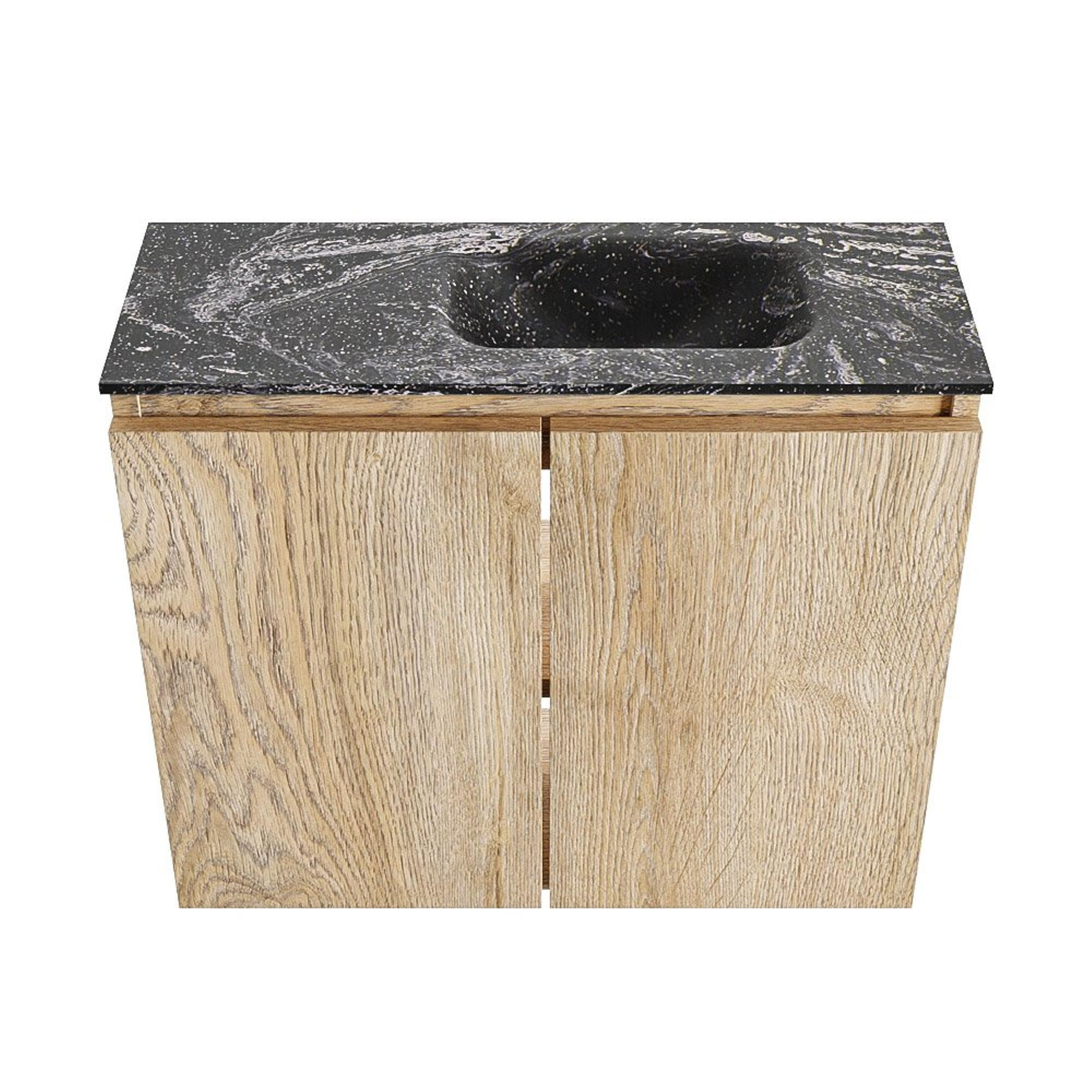MONDIAZ TURE-DLUX 60cm toiletmeubel Washed Oak. EDEN wastafel Lava positie rechts. Met 1 kraangat.