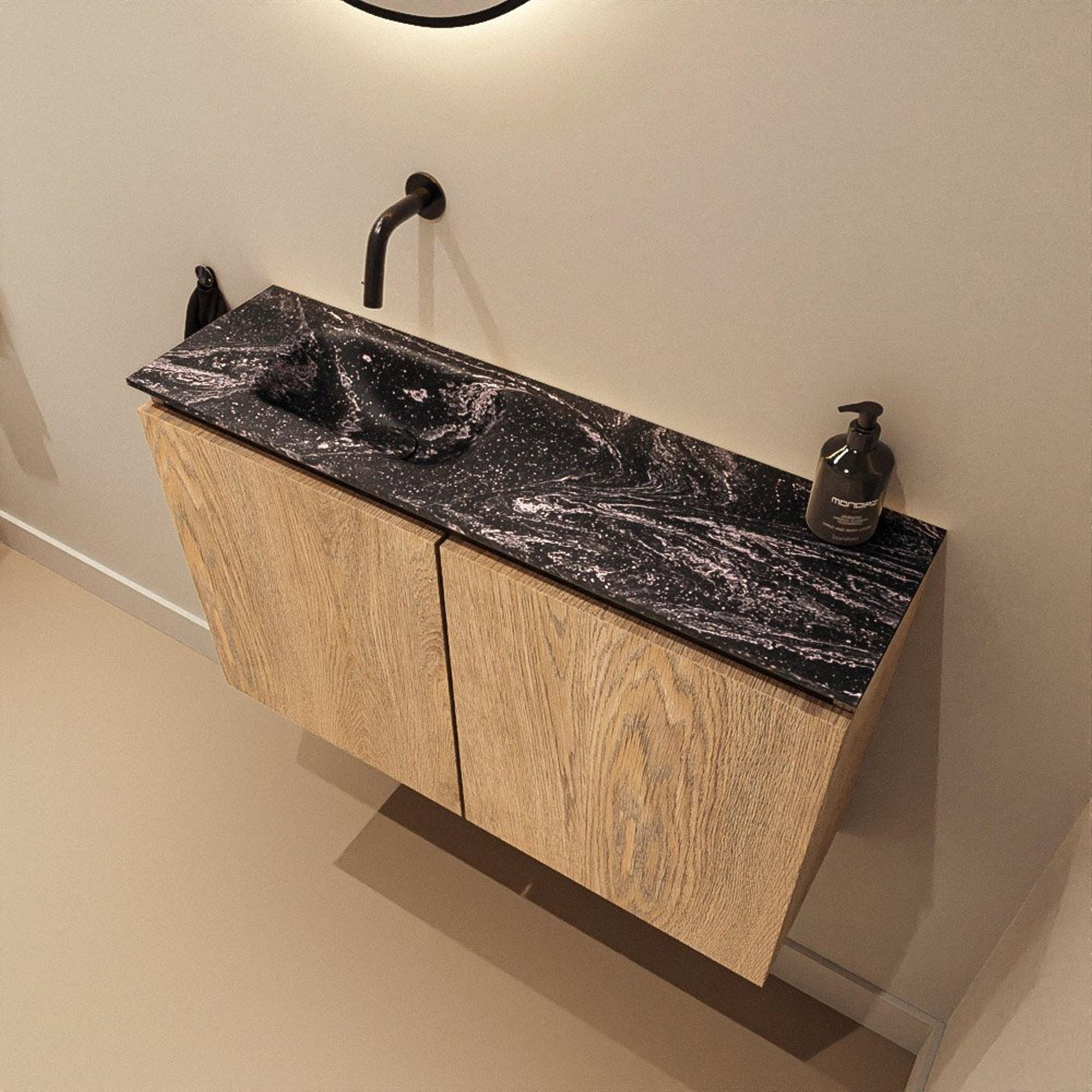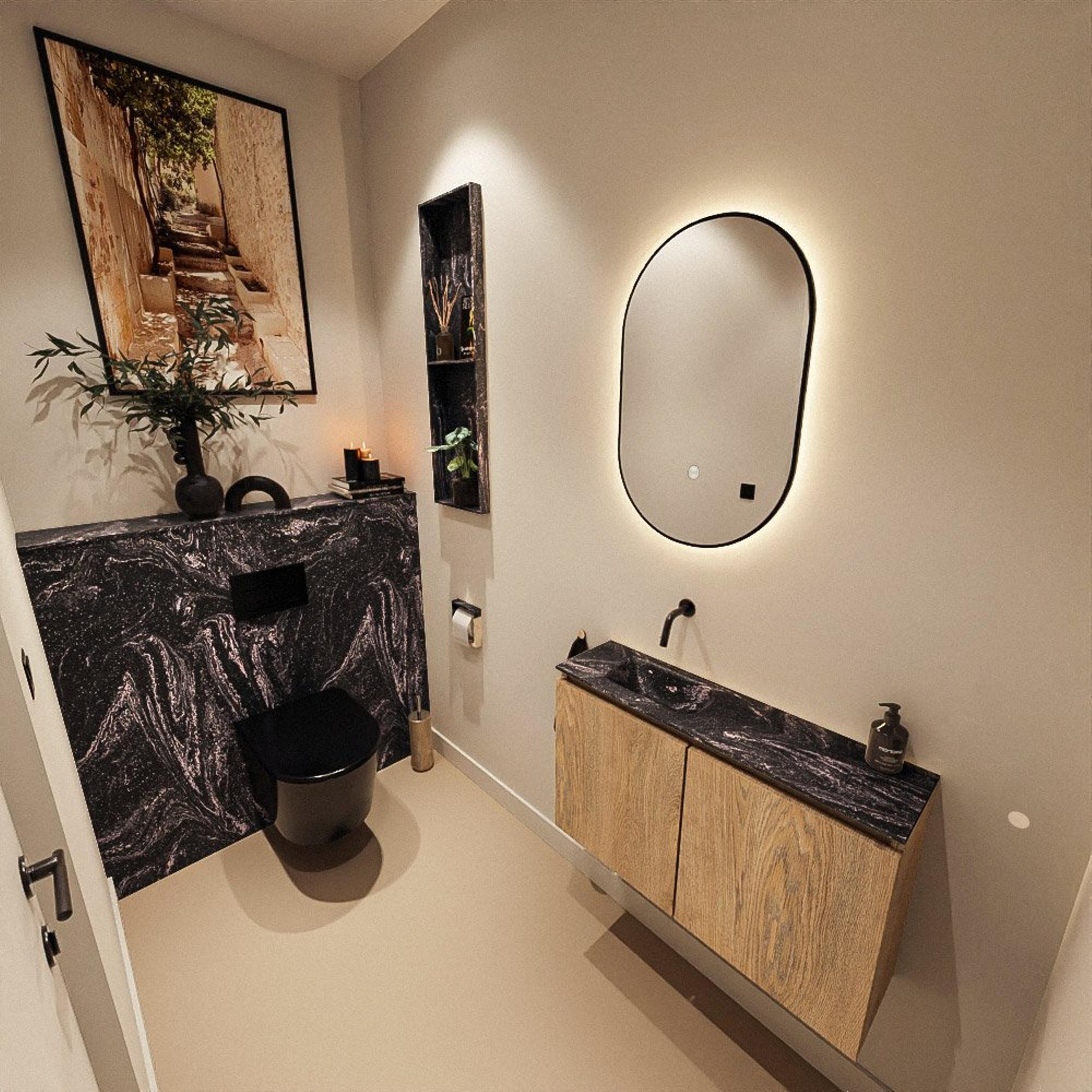MONDIAZ TURE-DLUX 80cm toiletmeubel Washed Oak. EDEN wastafel Lava positie links. Zonder kraangat.