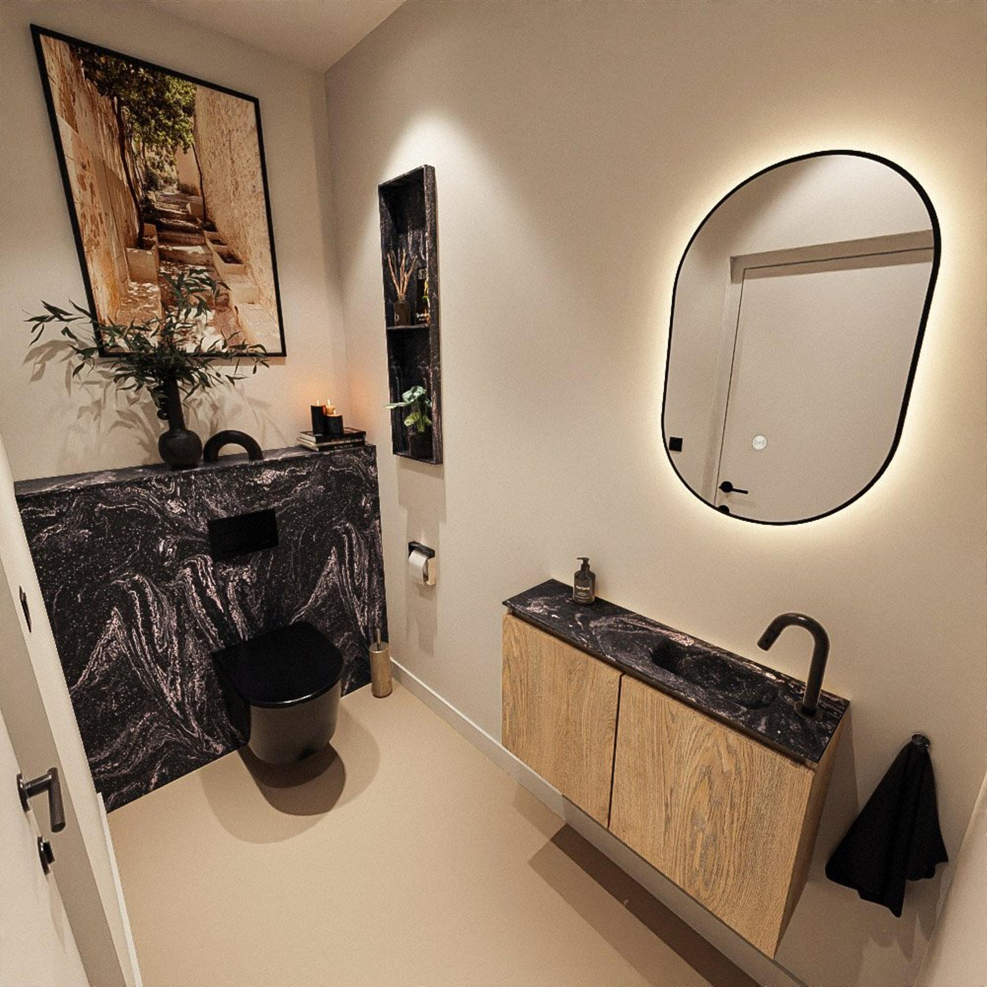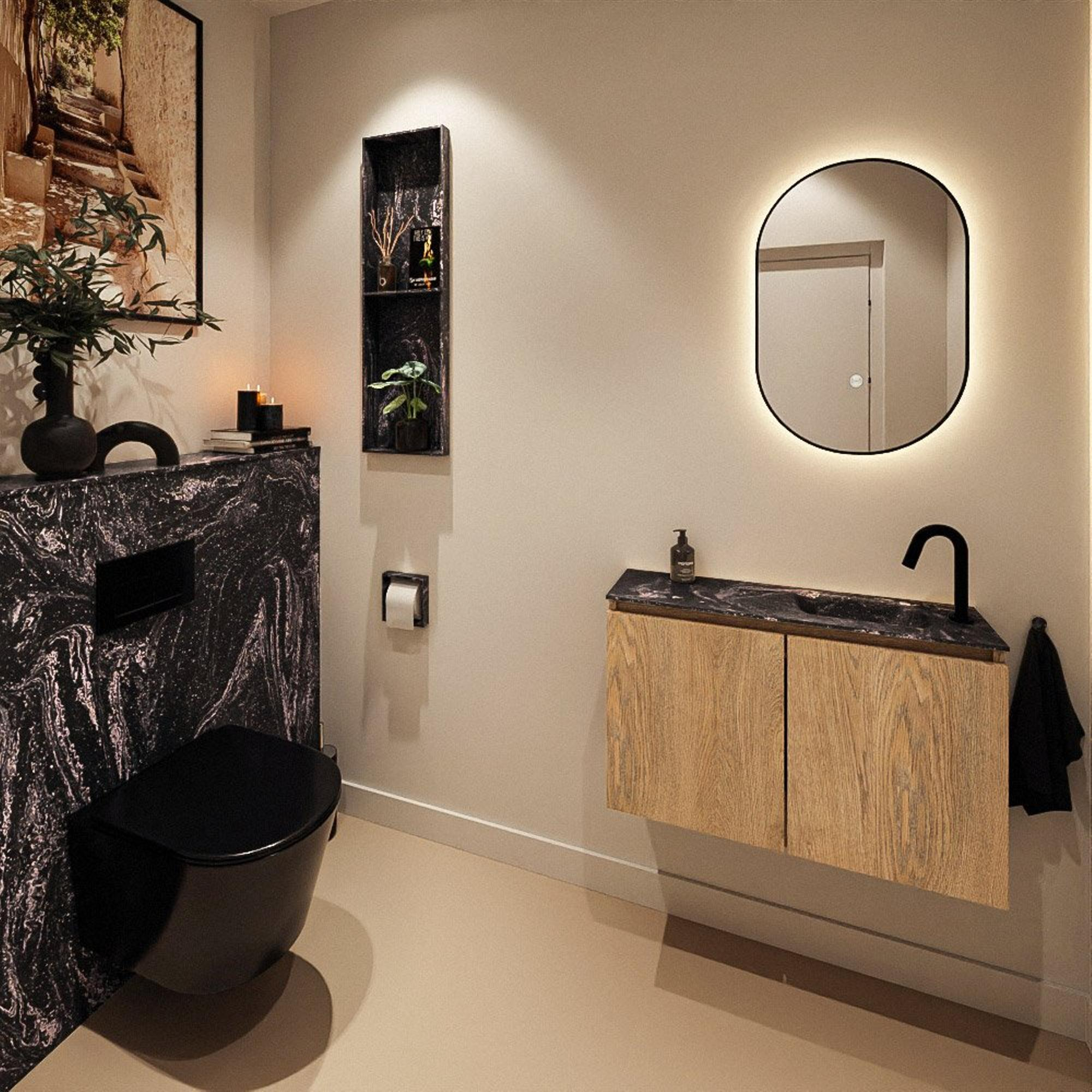 MONDIAZ TURE-DLUX 80cm toiletmeubel Washed Oak. EDEN wastafel Lava positie rechts. Met 1 kraangat.
