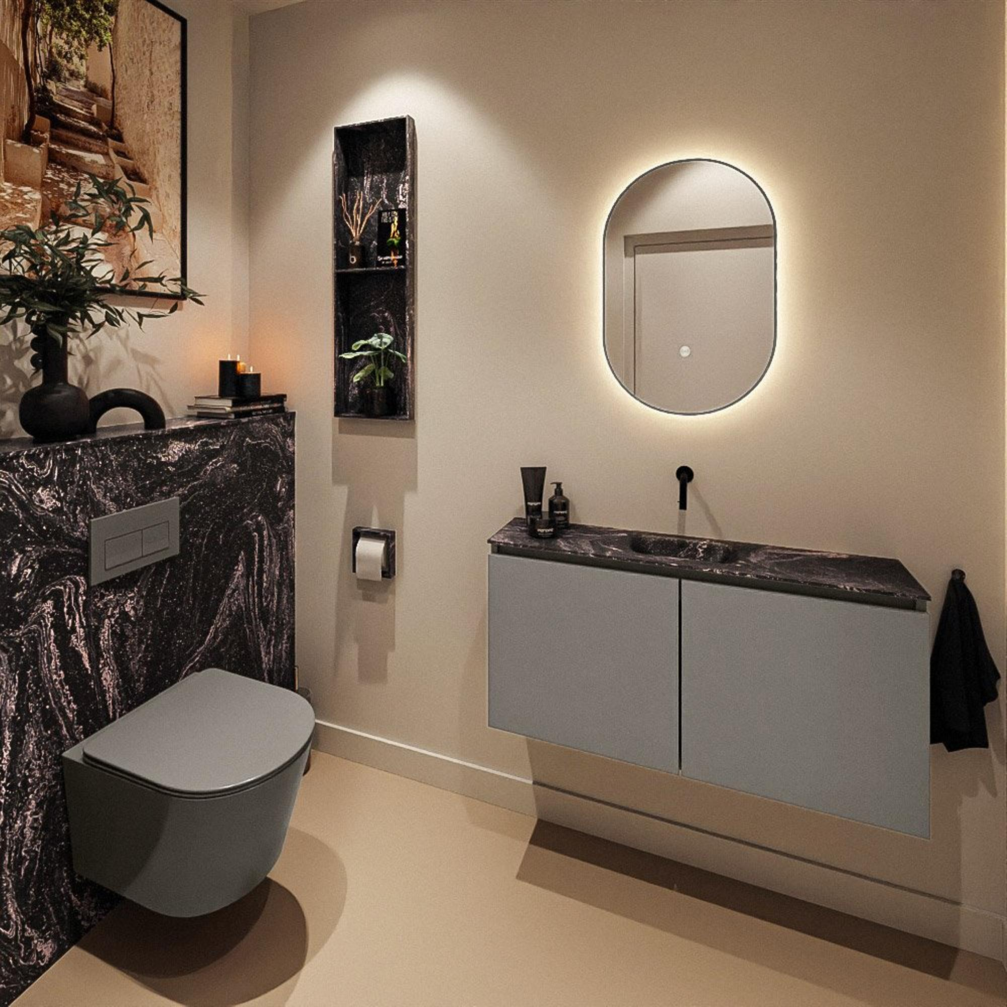 MONDIAZ TURE-DLUX 100cm toiletmeubel Smoke. EDEN wastafel Lava positie midden. Zonder kraangat.