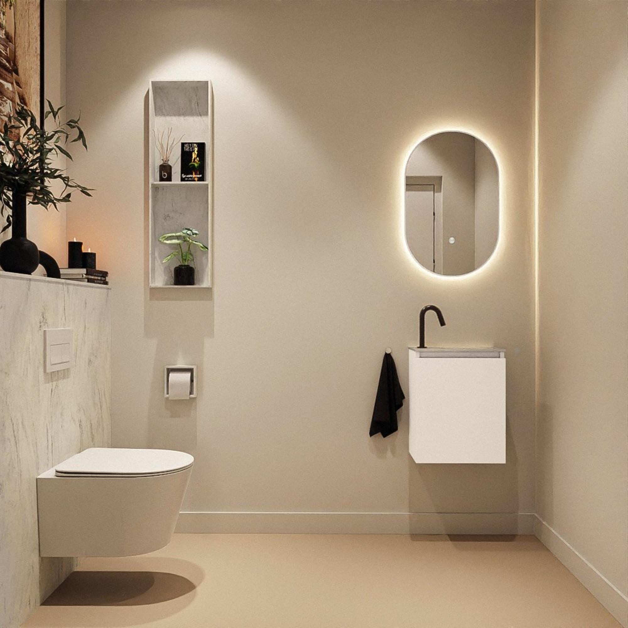 MONDIAZ TURE-DLUX 40cm toiletmeubel Talc. EDEN wastafel Opalo positie rechts. Met 1 kraangat.