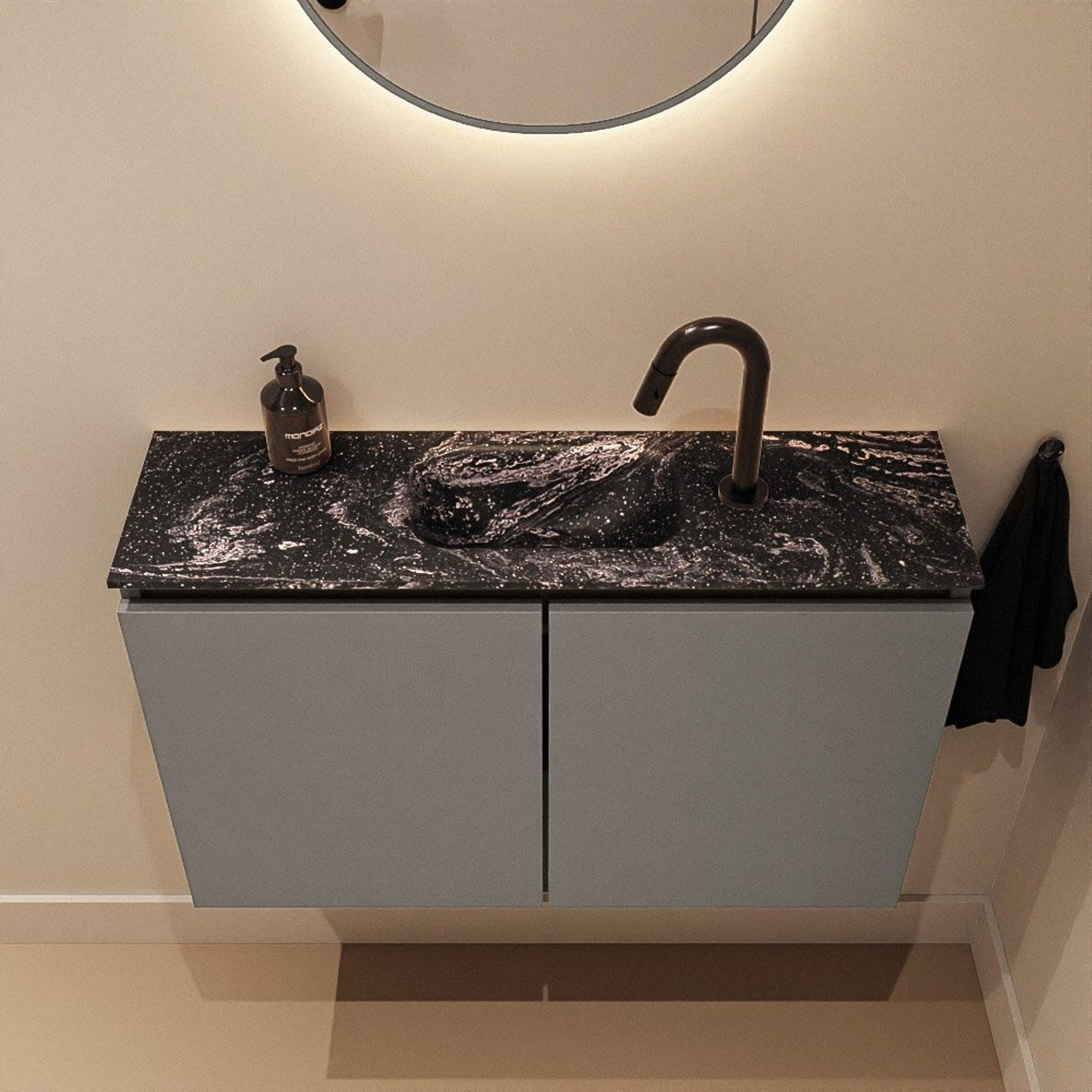 MONDIAZ TURE-DLUX 80cm toiletmeubel Smoke. EDEN wastafel Lava positie midden. Met 1 kraangat.