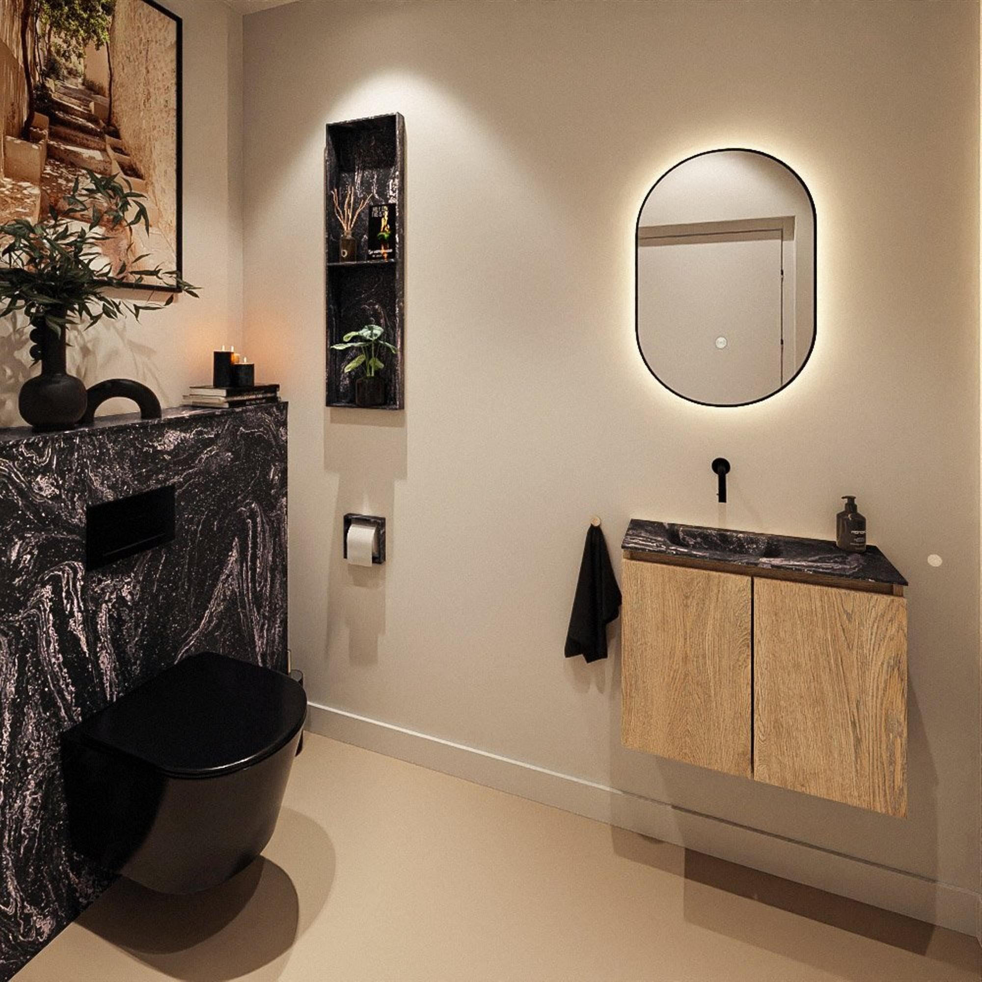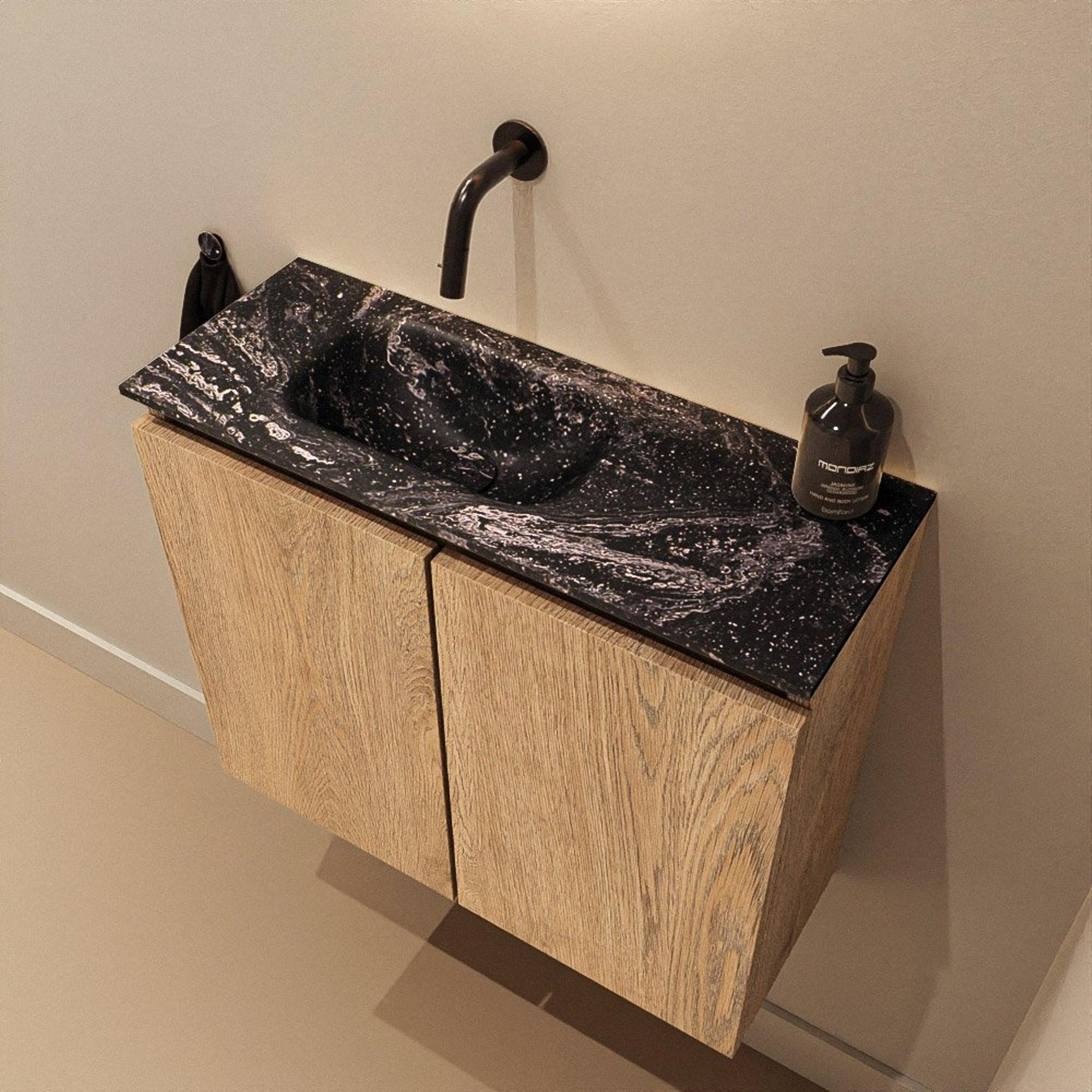 MONDIAZ TURE-DLUX 60cm toiletmeubel Washed Oak. EDEN wastafel Lava positie links. Zonder kraangat.