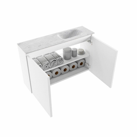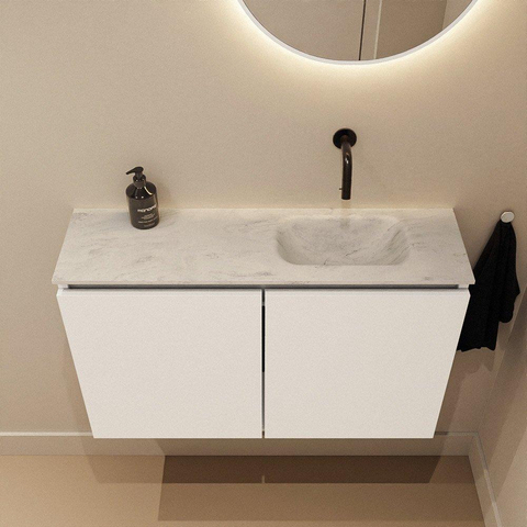 MONDIAZ TURE-DLUX 80cm toiletmeubel Talc. EDEN wastafel Opalo positie rechts. Zonder kraangat.