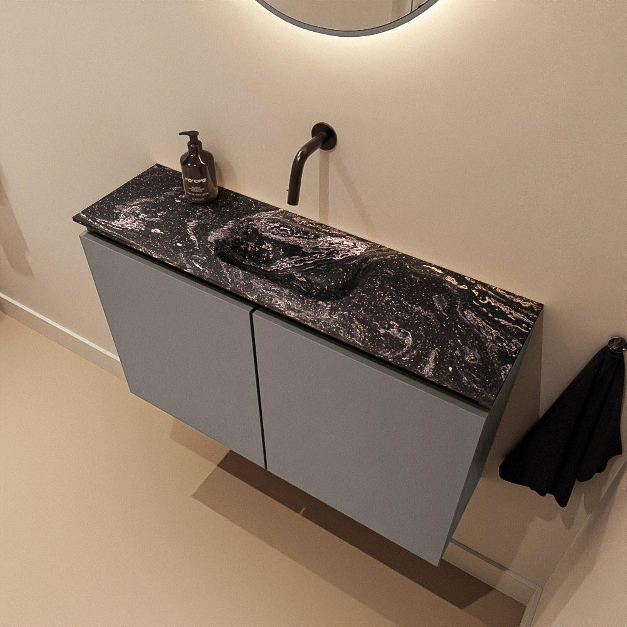 MONDIAZ TURE-DLUX 80cm toiletmeubel Smoke. EDEN wastafel Lava positie midden. Zonder kraangat.