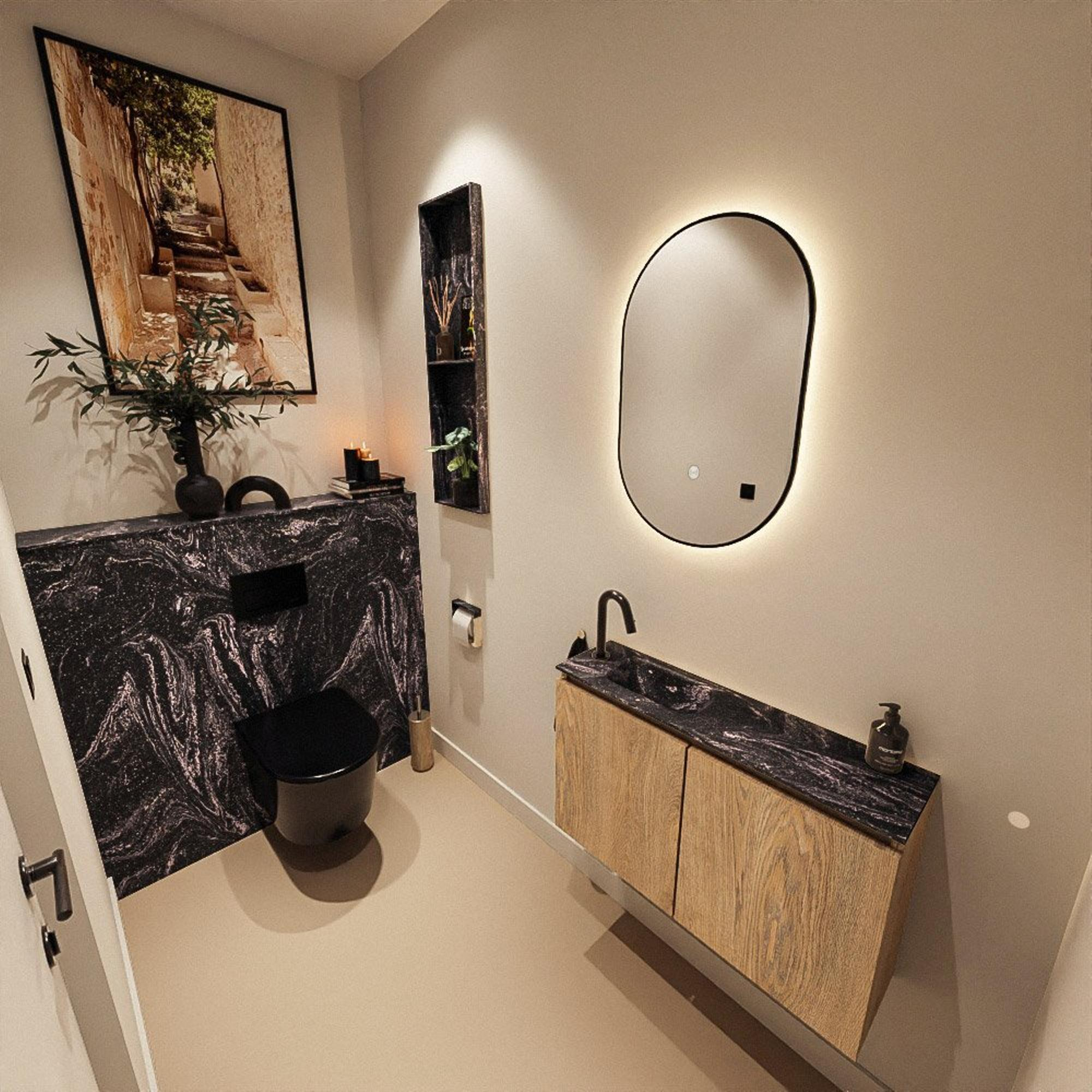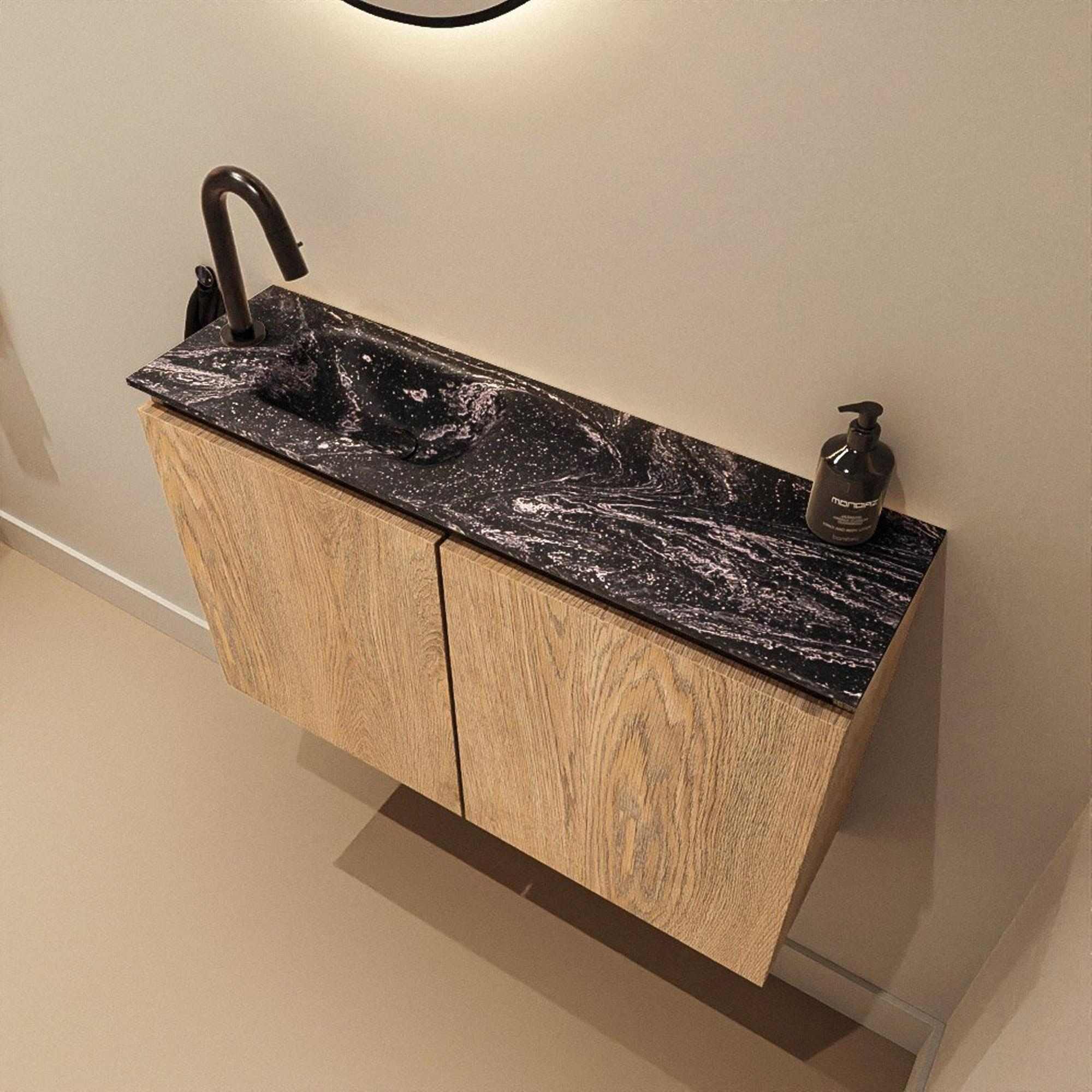 MONDIAZ TURE-DLUX 80cm toiletmeubel Washed Oak. EDEN wastafel Lava positie links. Met 1 kraangat.