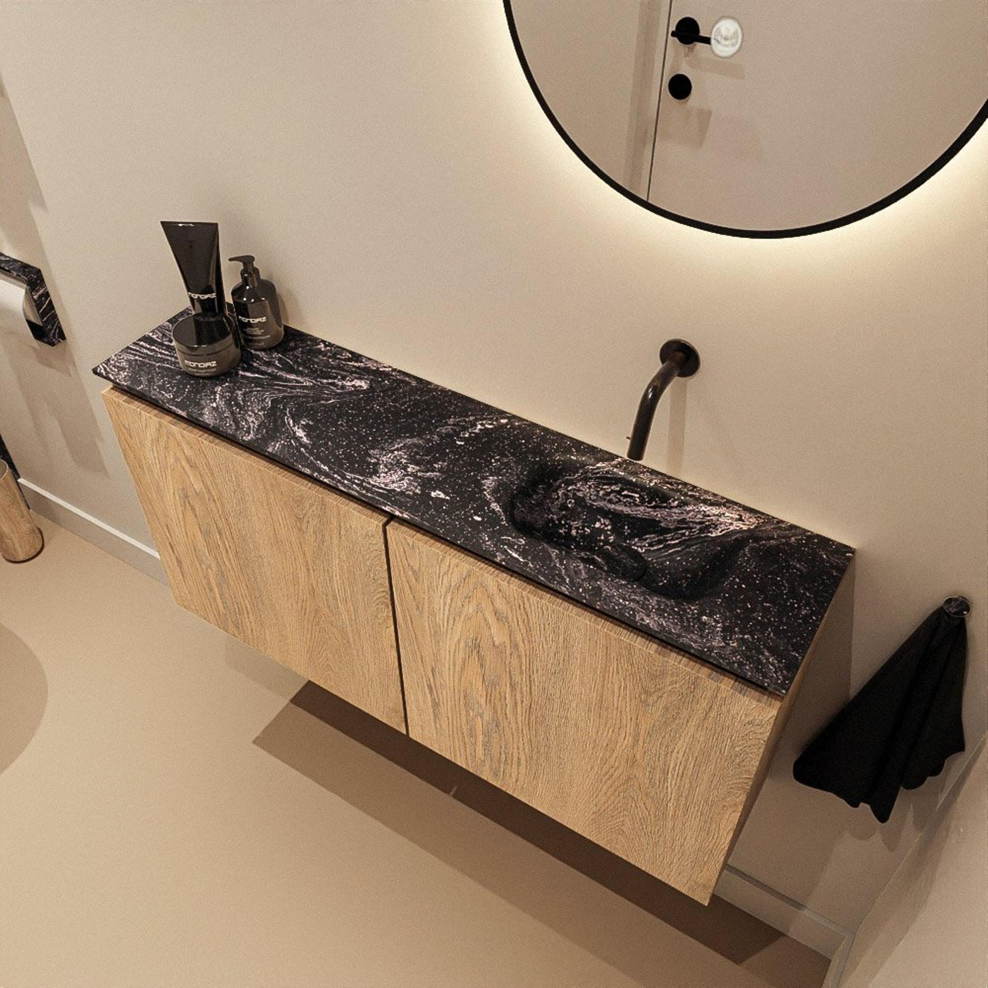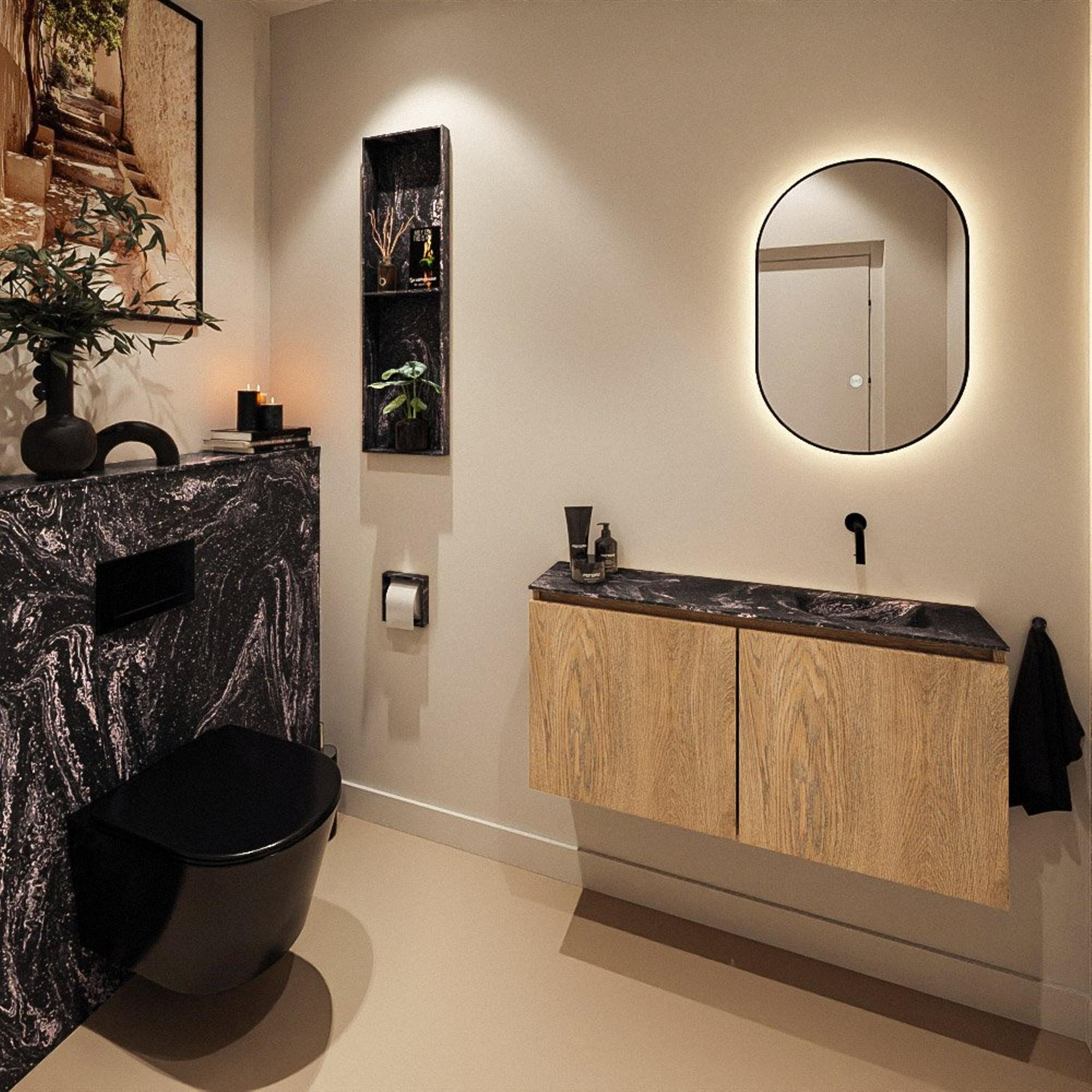 MONDIAZ TURE-DLUX 100cm toiletmeubel Washed Oak. EDEN wastafel Lava positie rechts. Zonder kraangat.