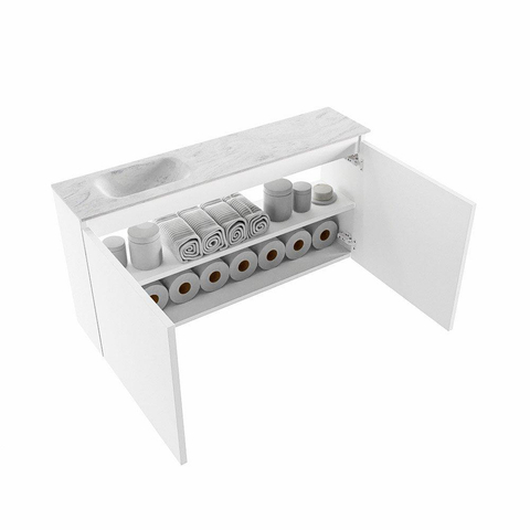 MONDIAZ TURE-DLUX 100cm toiletmeubel Talc. EDEN wastafel Opalo positie links. Met 1 kraangat.