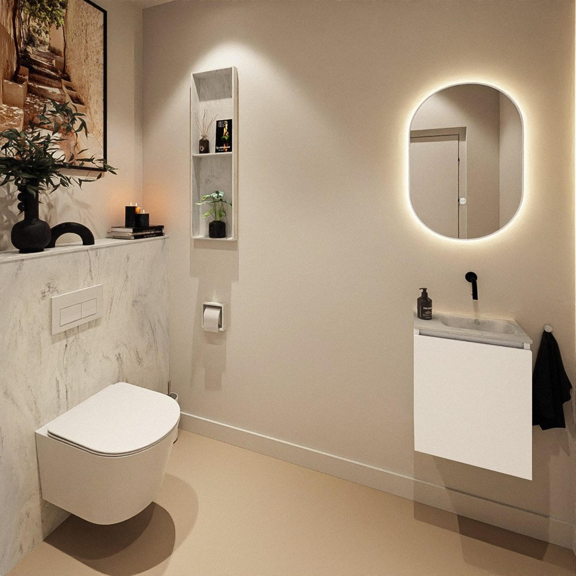 MONDIAZ TURE-DLUX 40cm toiletmeubel Talc. EDEN wastafel Opalo positie rechts. Zonder kraangat.