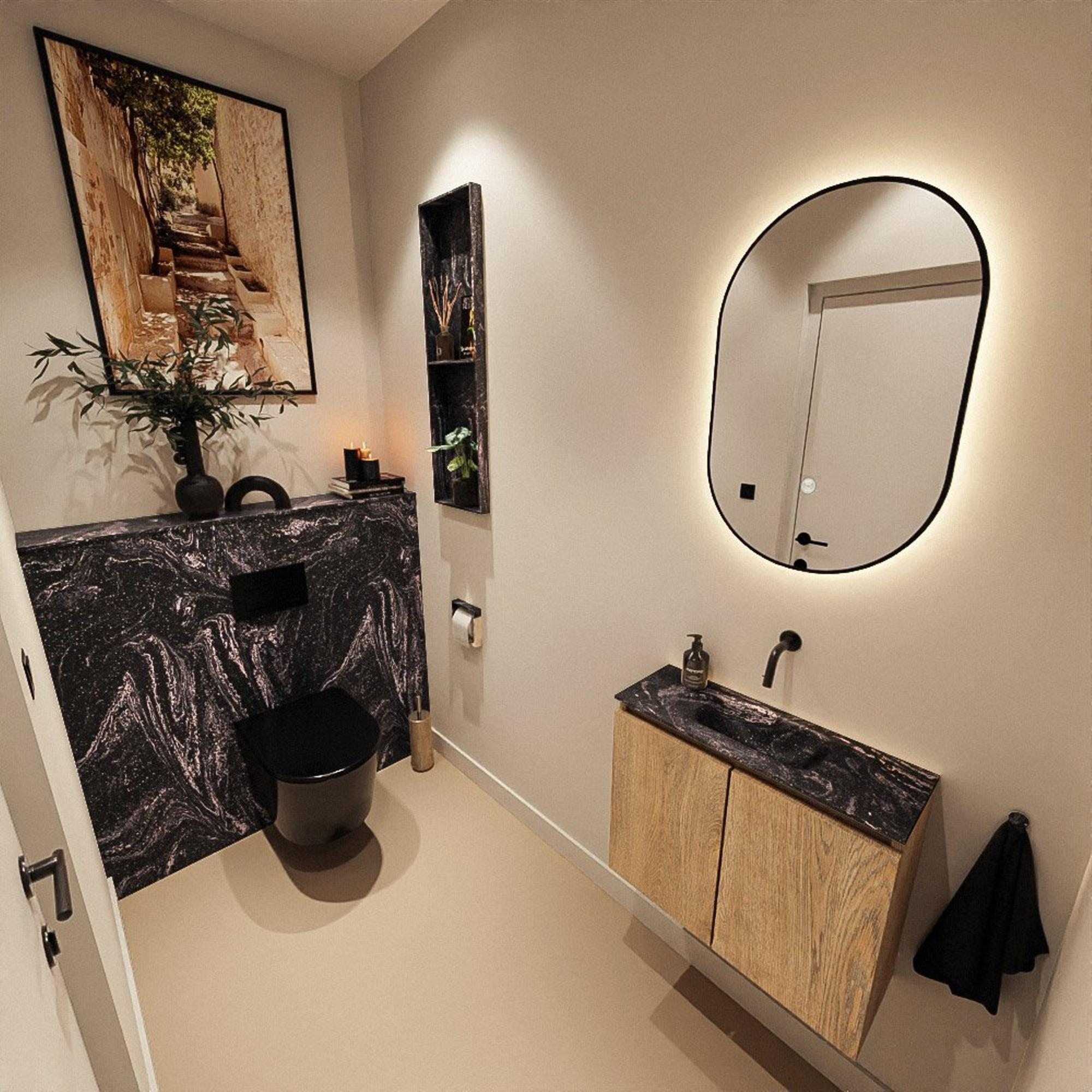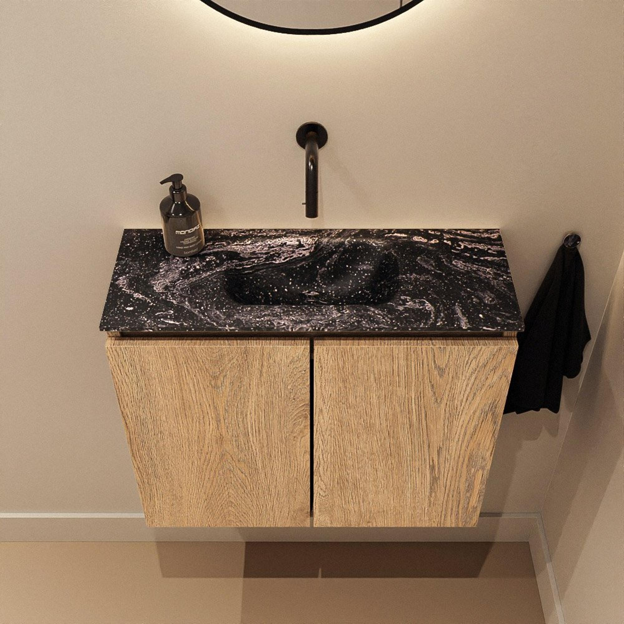 MONDIAZ TURE-DLUX 60cm toiletmeubel Washed Oak. EDEN wastafel Lava positie midden. Zonder kraangat.