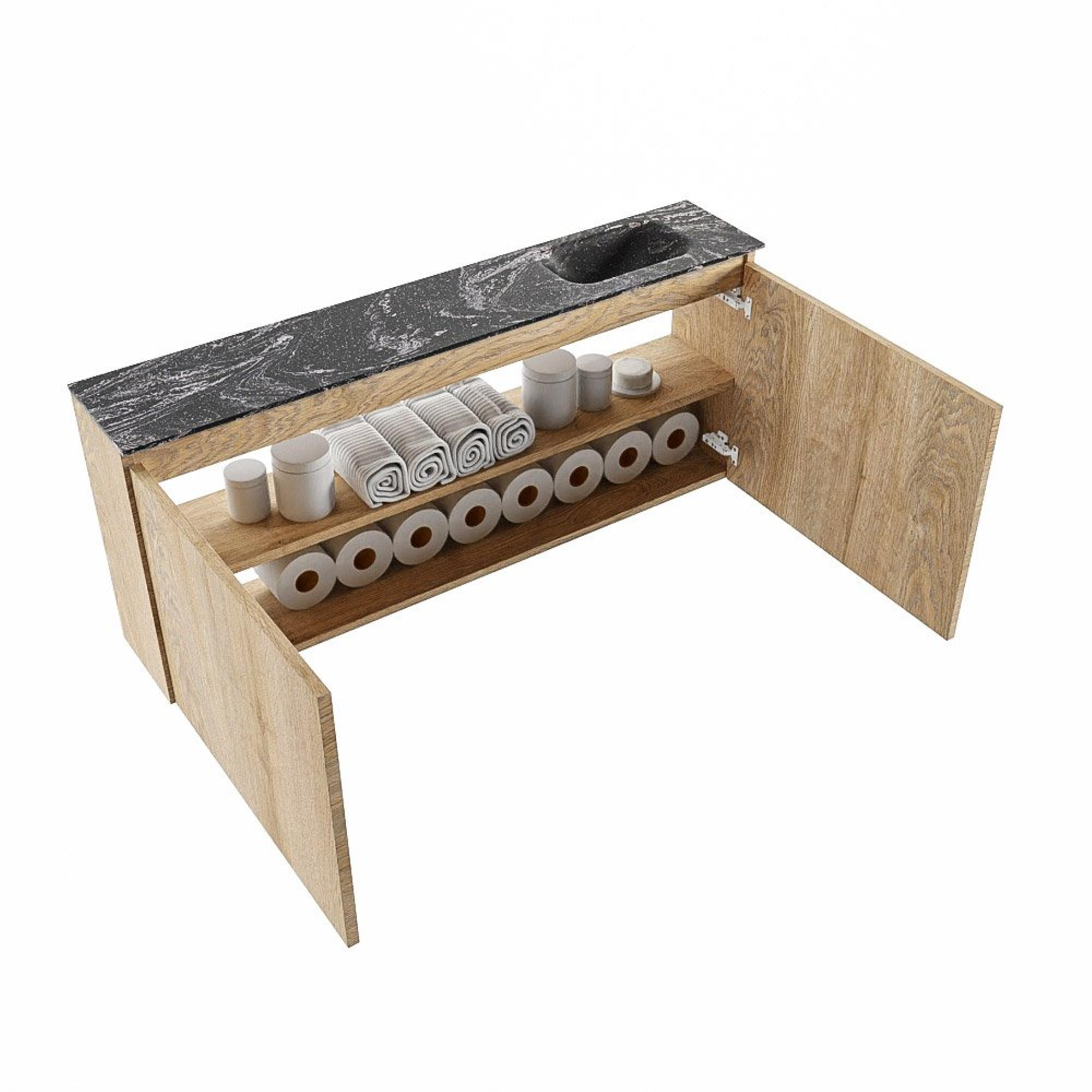 MONDIAZ TURE-DLUX 120cm toiletmeubel Washed Oak. EDEN wastafel Lava positie rechts. Zonder kraangat.
