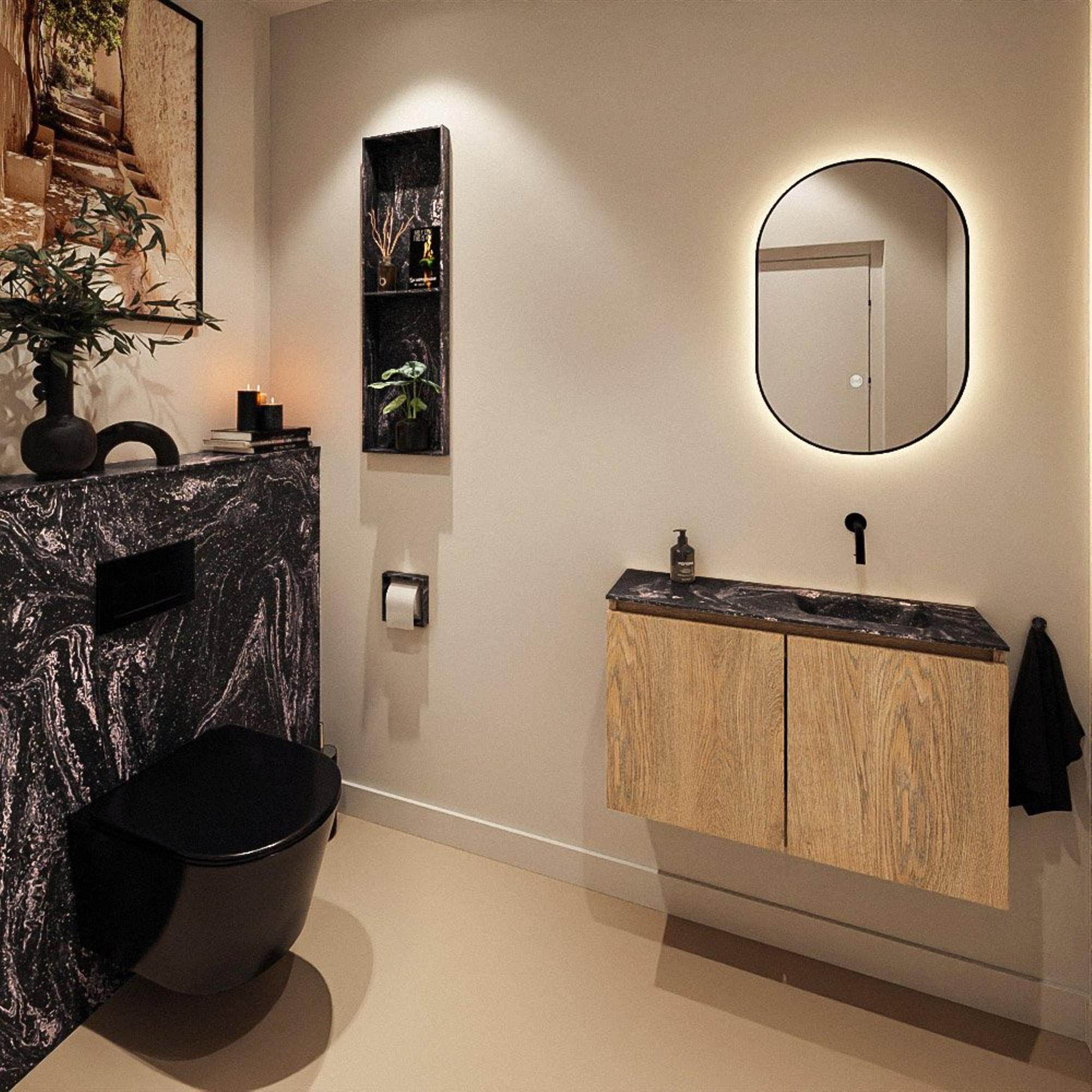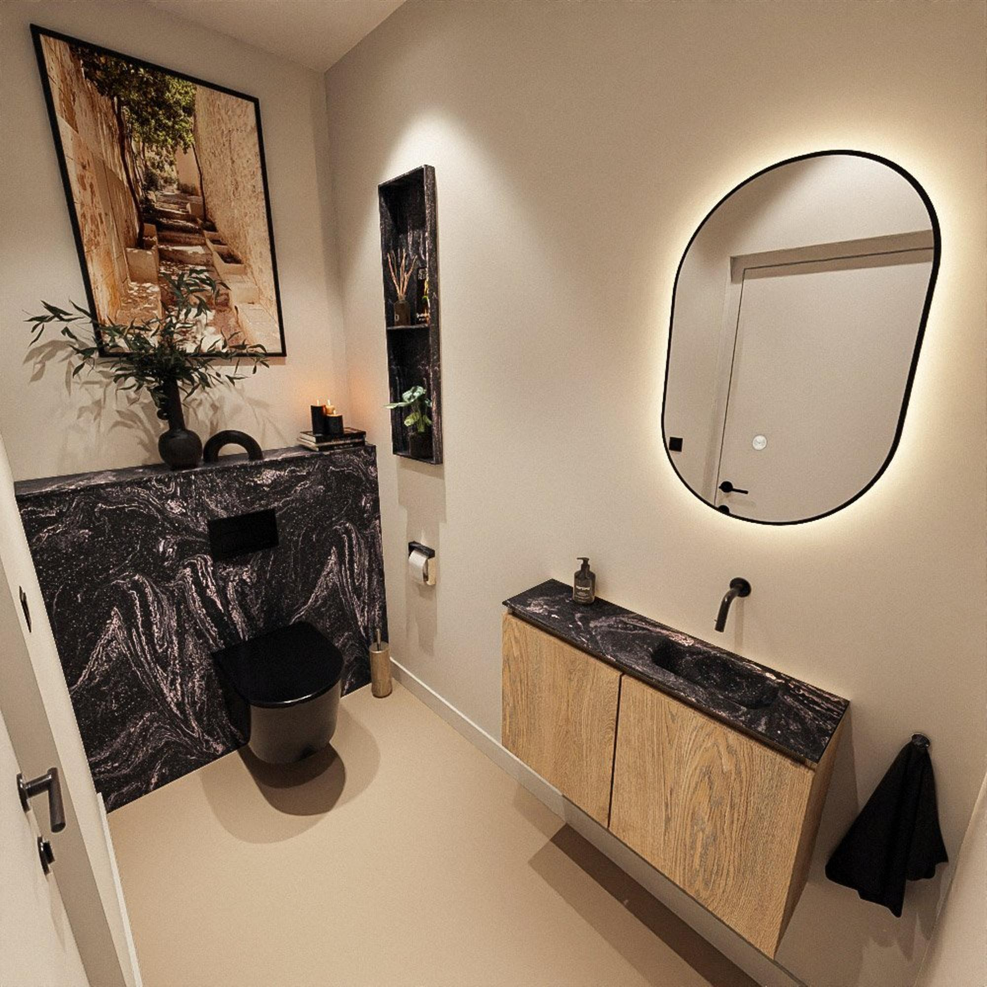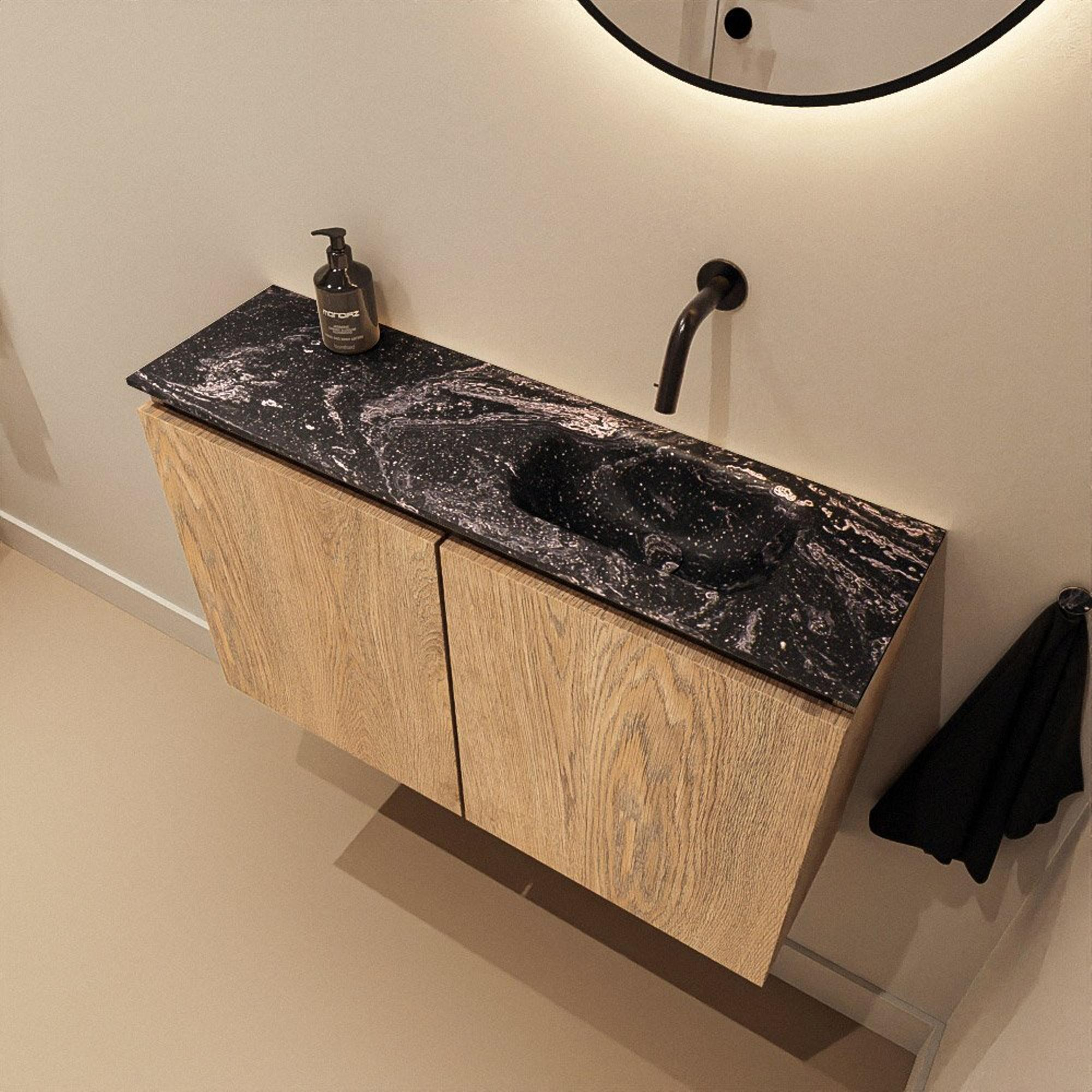 MONDIAZ TURE-DLUX 80cm toiletmeubel Washed Oak. EDEN wastafel Lava positie rechts. Zonder kraangat.