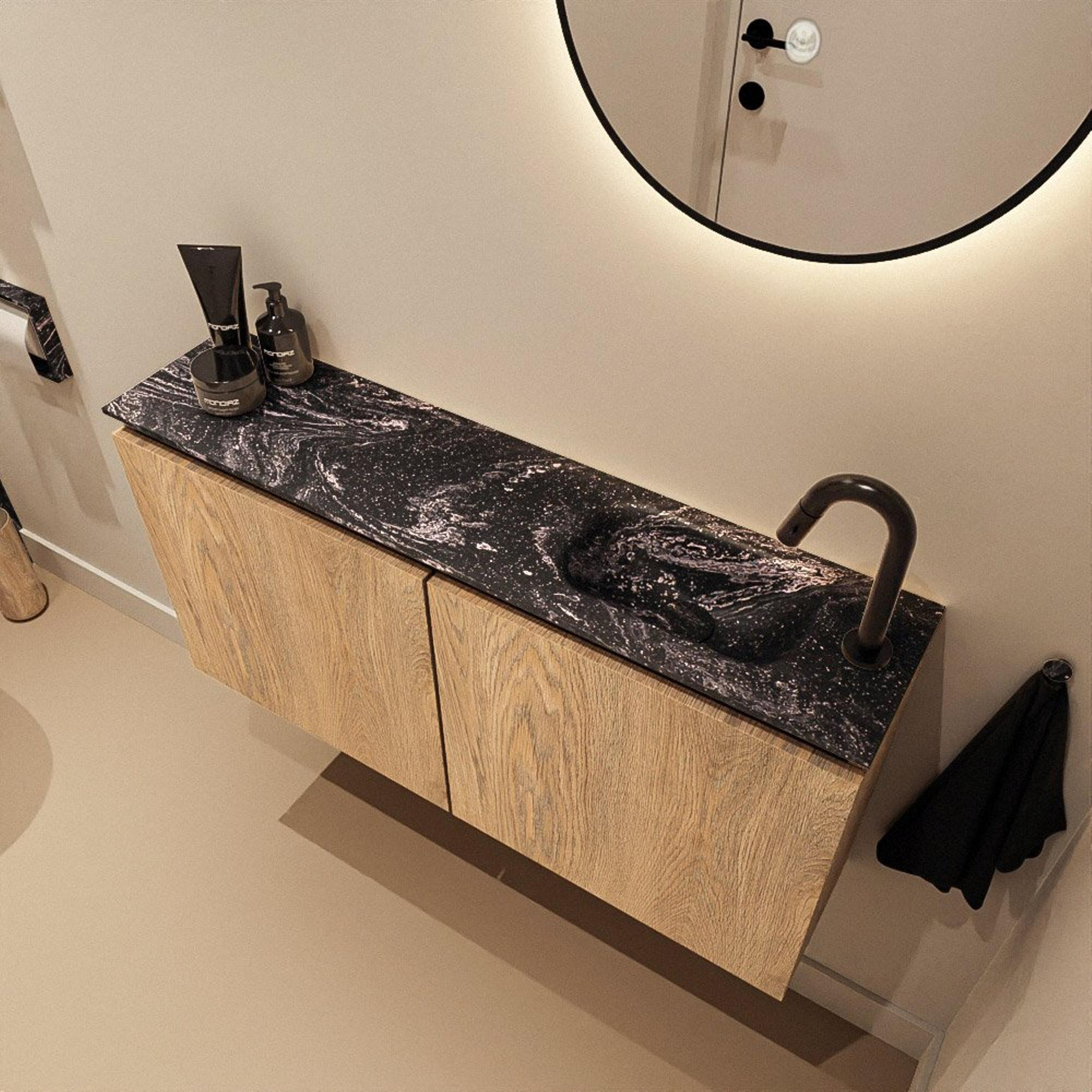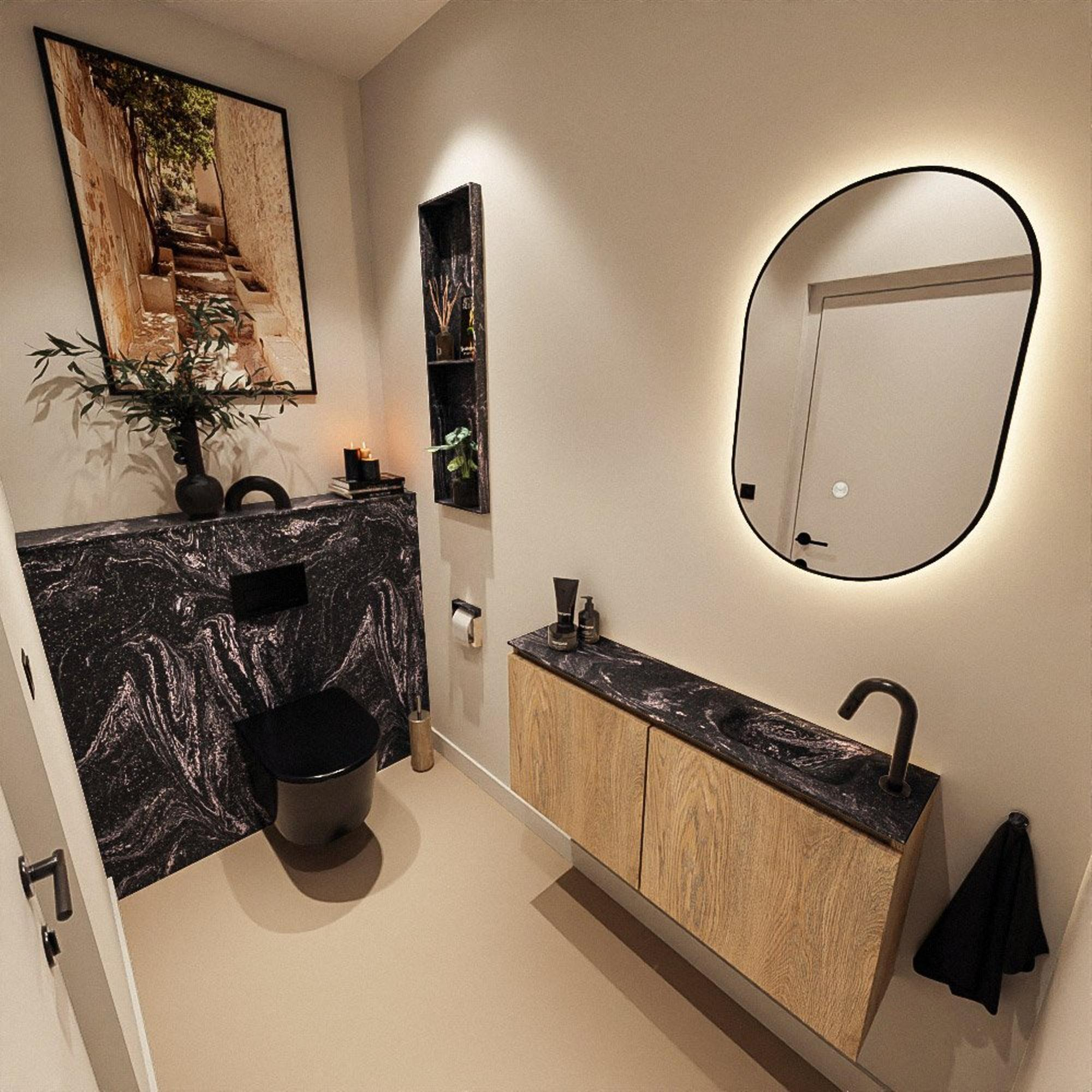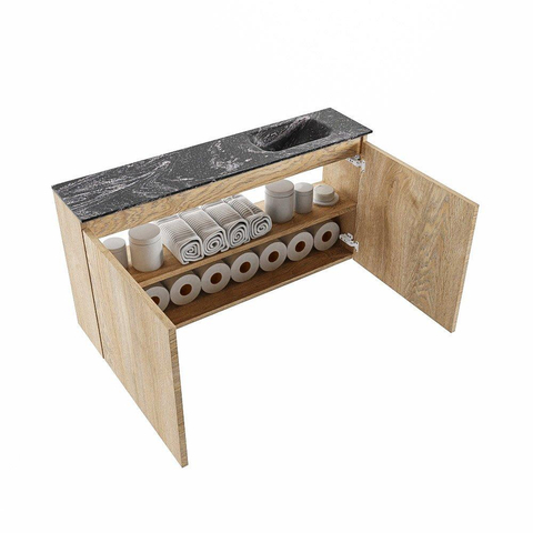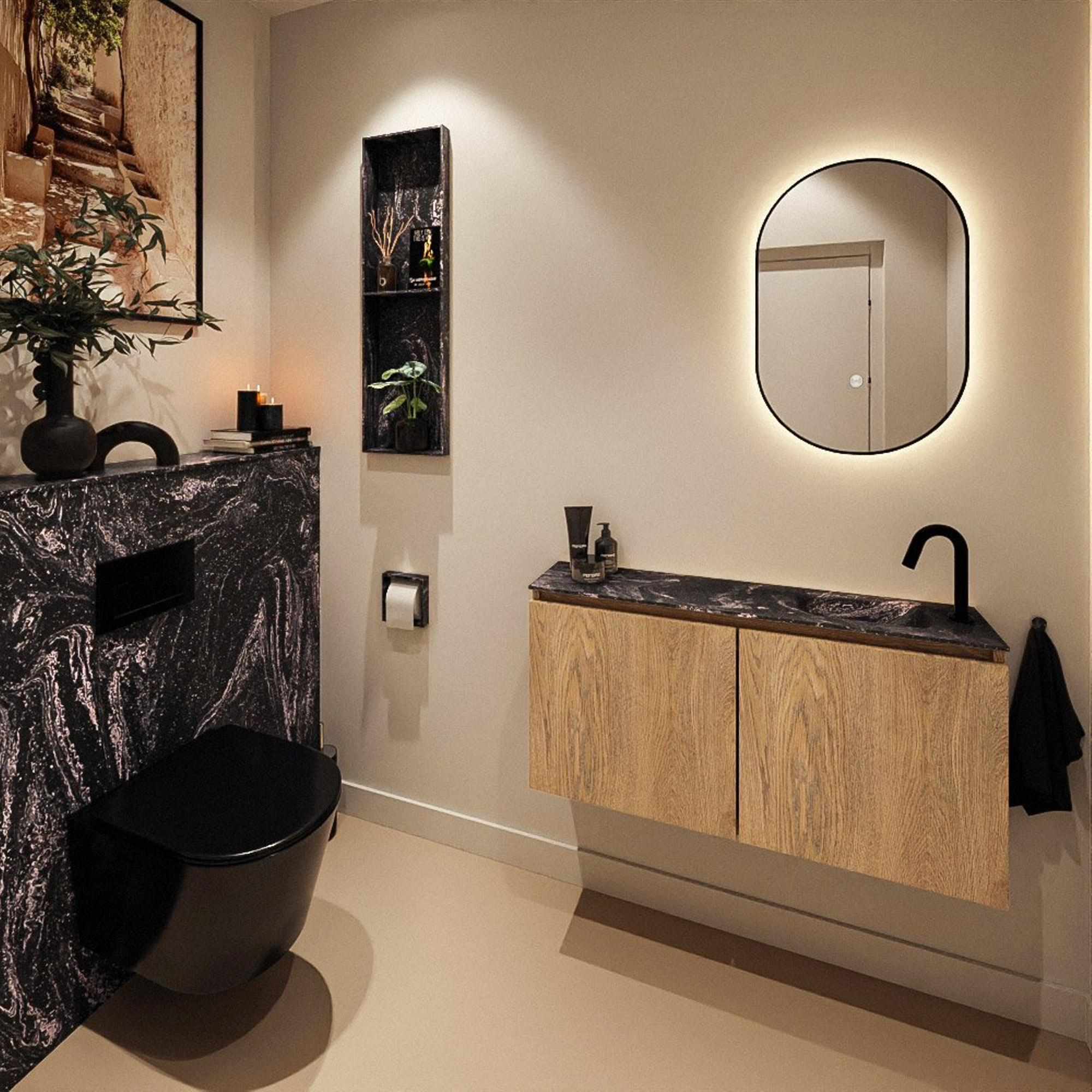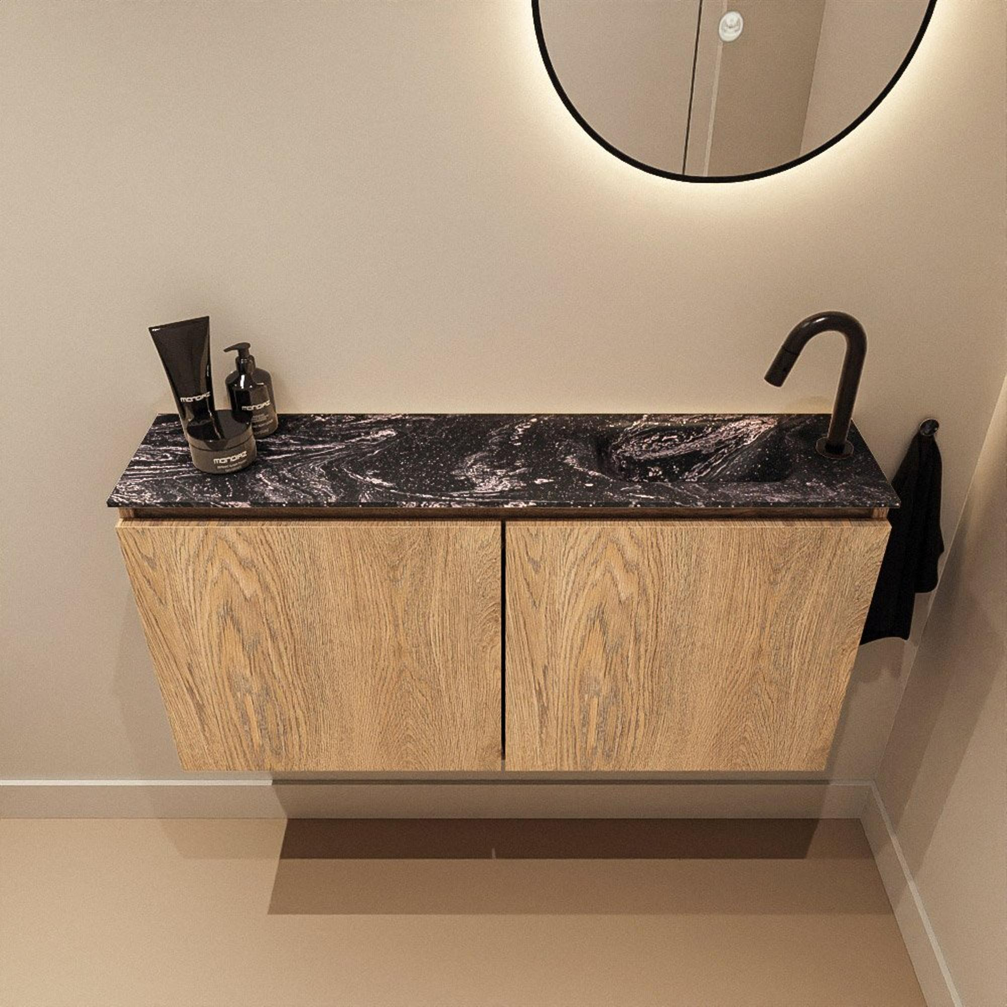 MONDIAZ TURE-DLUX 100cm toiletmeubel Washed Oak. EDEN wastafel Lava positie rechts. Met 1 kraangat.
