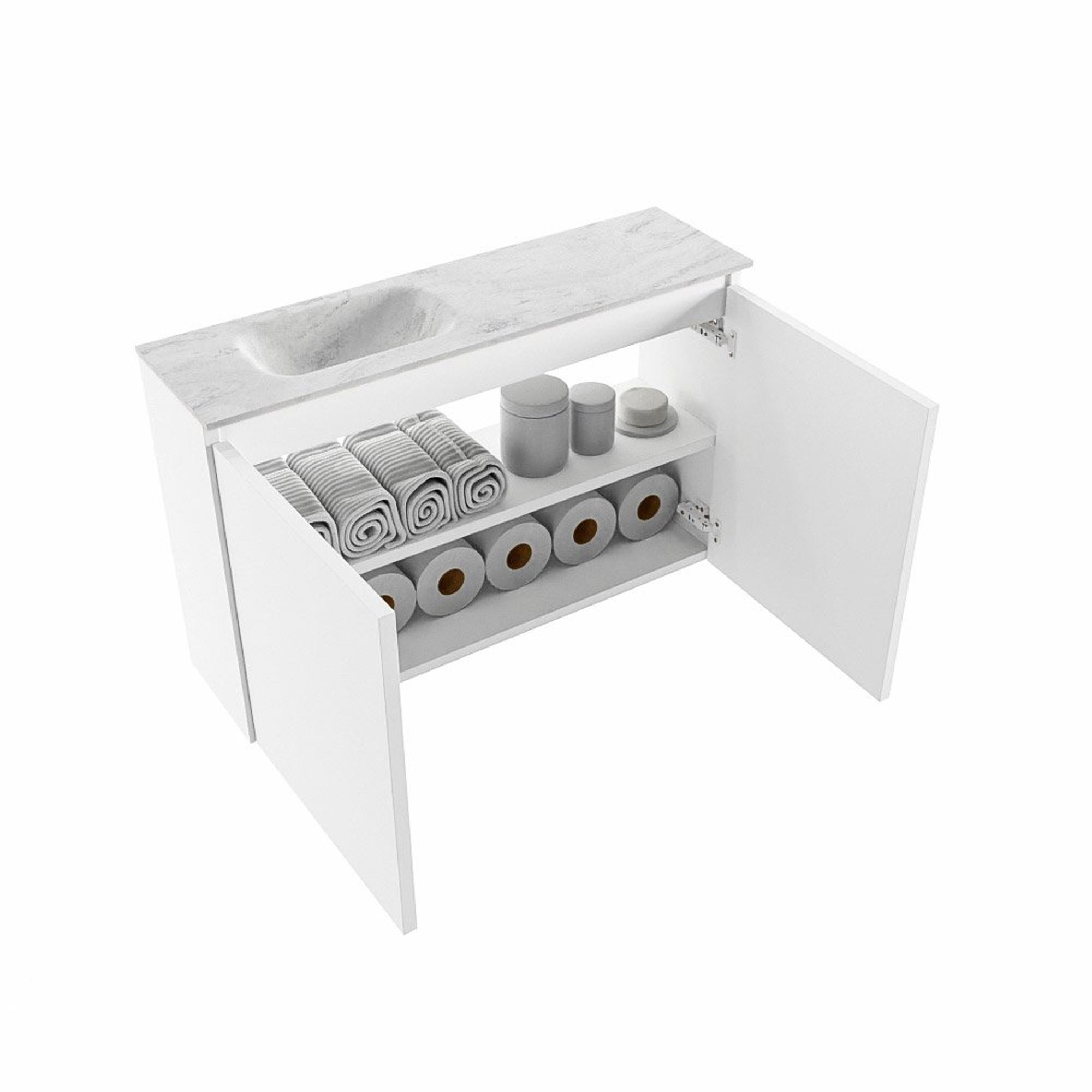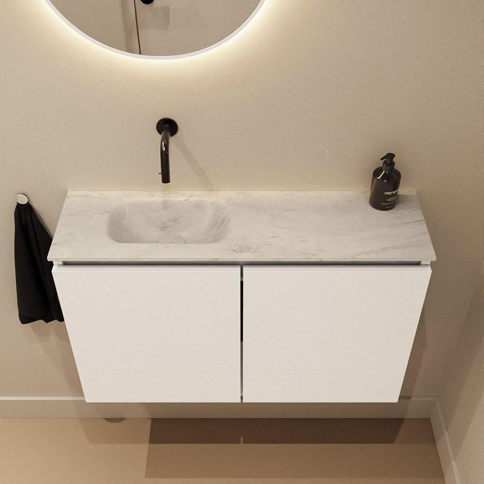MONDIAZ TURE-DLUX 80cm toiletmeubel Talc. EDEN wastafel Opalo positie links. Zonder kraangat.