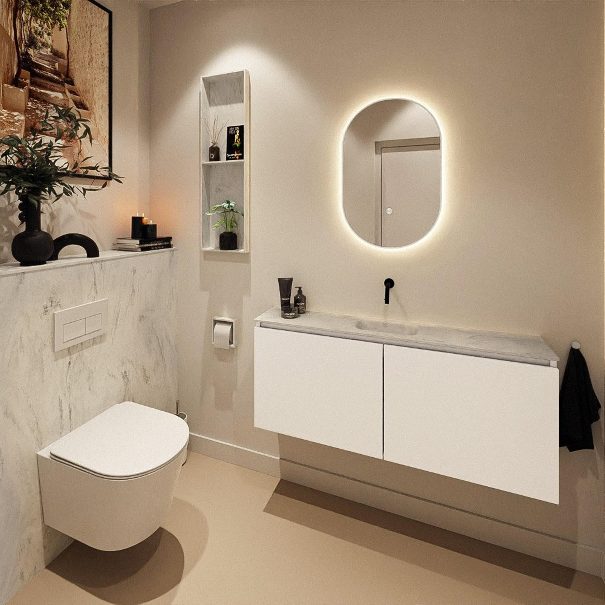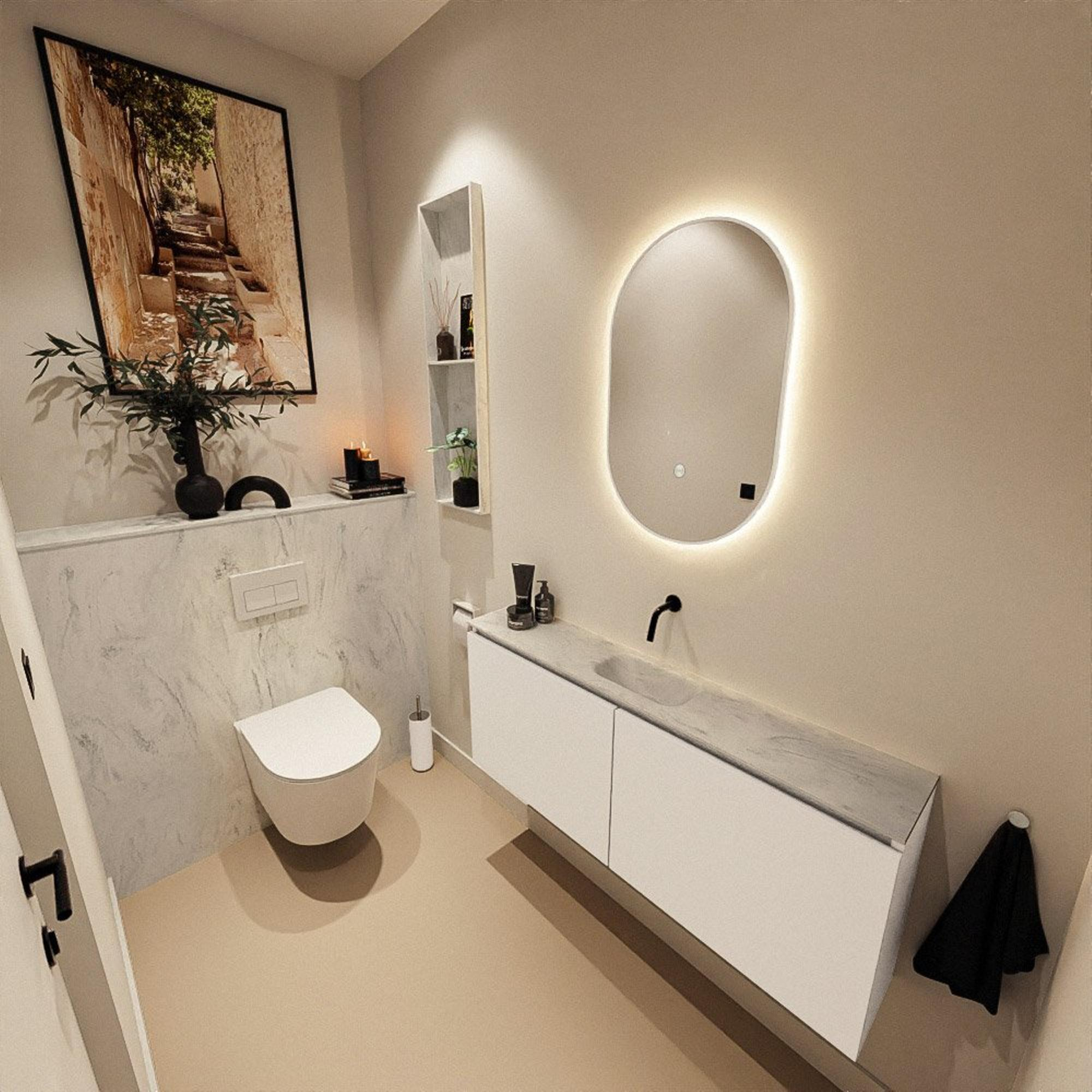 MONDIAZ TURE-DLUX 120cm toiletmeubel Talc. EDEN wastafel Opalo positie midden. Zonder kraangat.