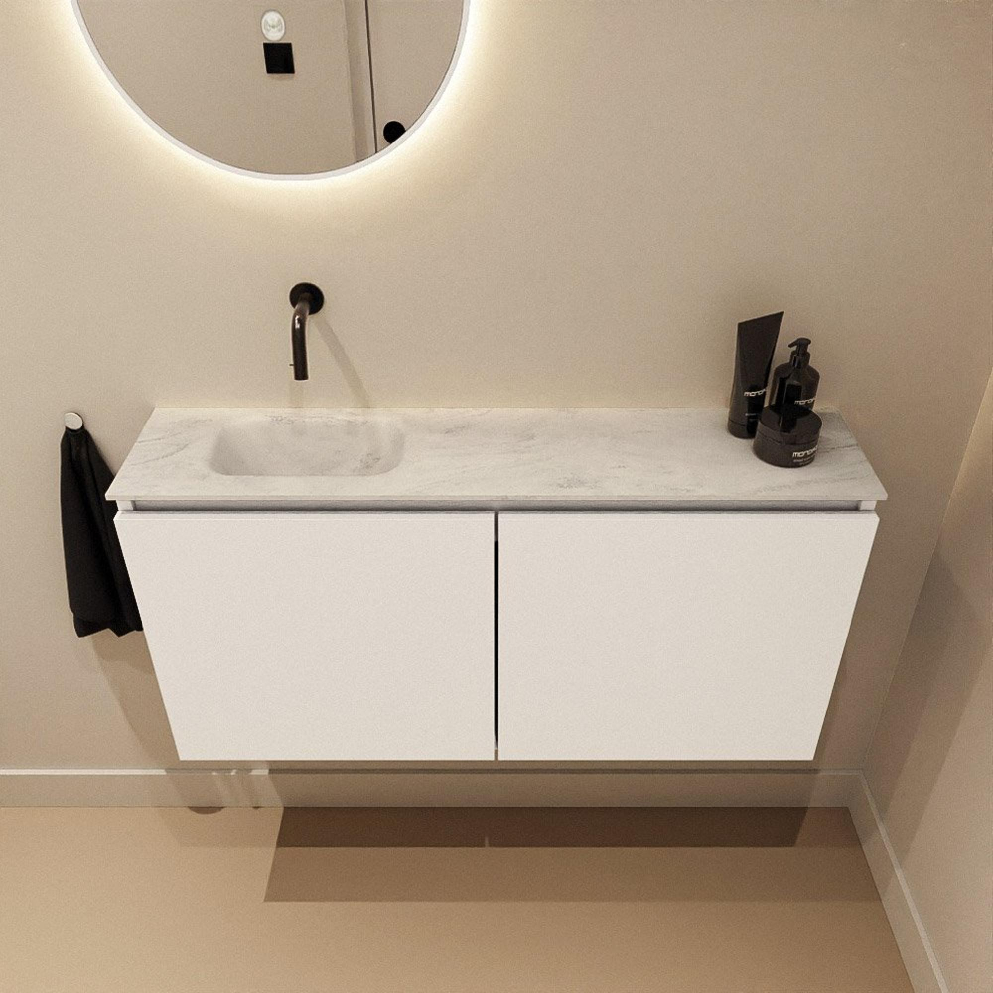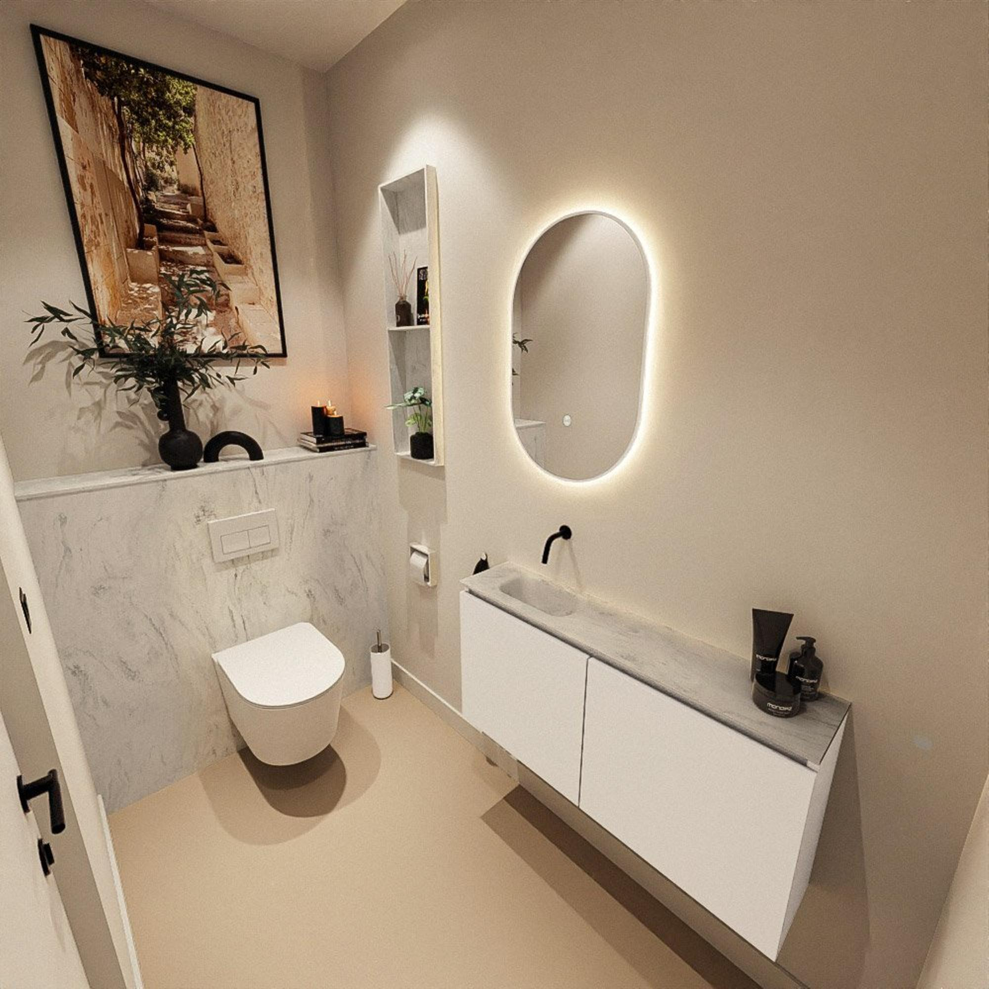 MONDIAZ TURE-DLUX 100cm toiletmeubel Talc. EDEN wastafel Opalo positie links. Zonder kraangat.
