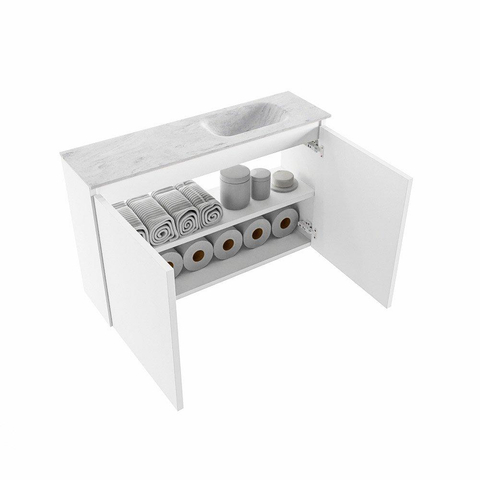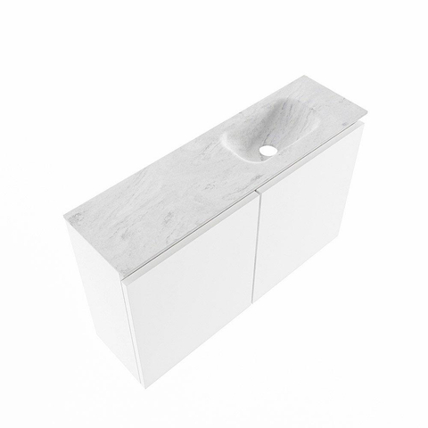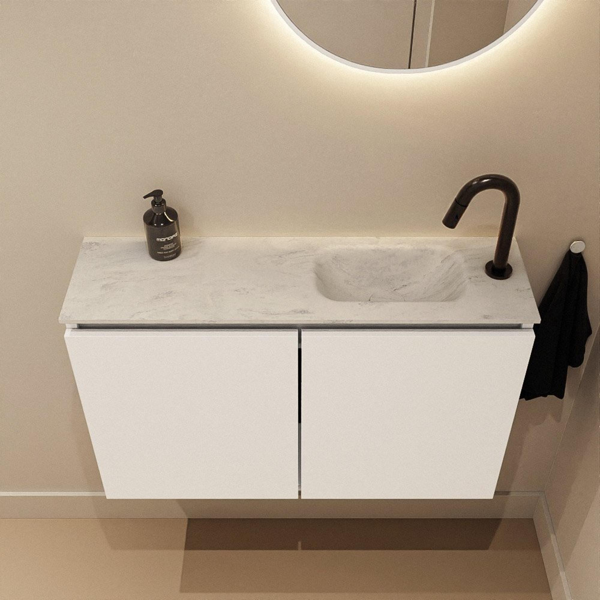 MONDIAZ TURE-DLUX 80cm toiletmeubel Talc. EDEN wastafel Opalo positie rechts. Met 1 kraangat.