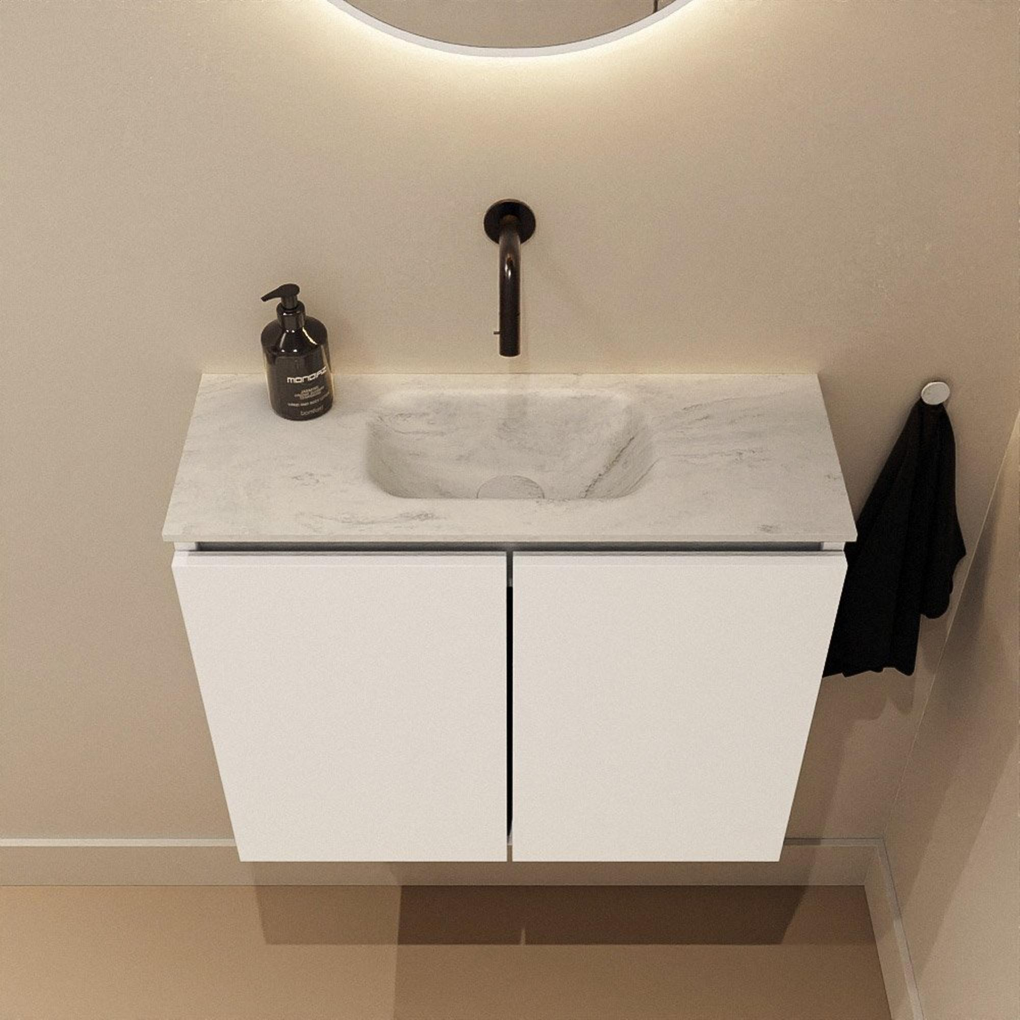 MONDIAZ TURE-DLUX 60cm toiletmeubel Talc. EDEN wastafel Opalo positie midden. Zonder kraangat.