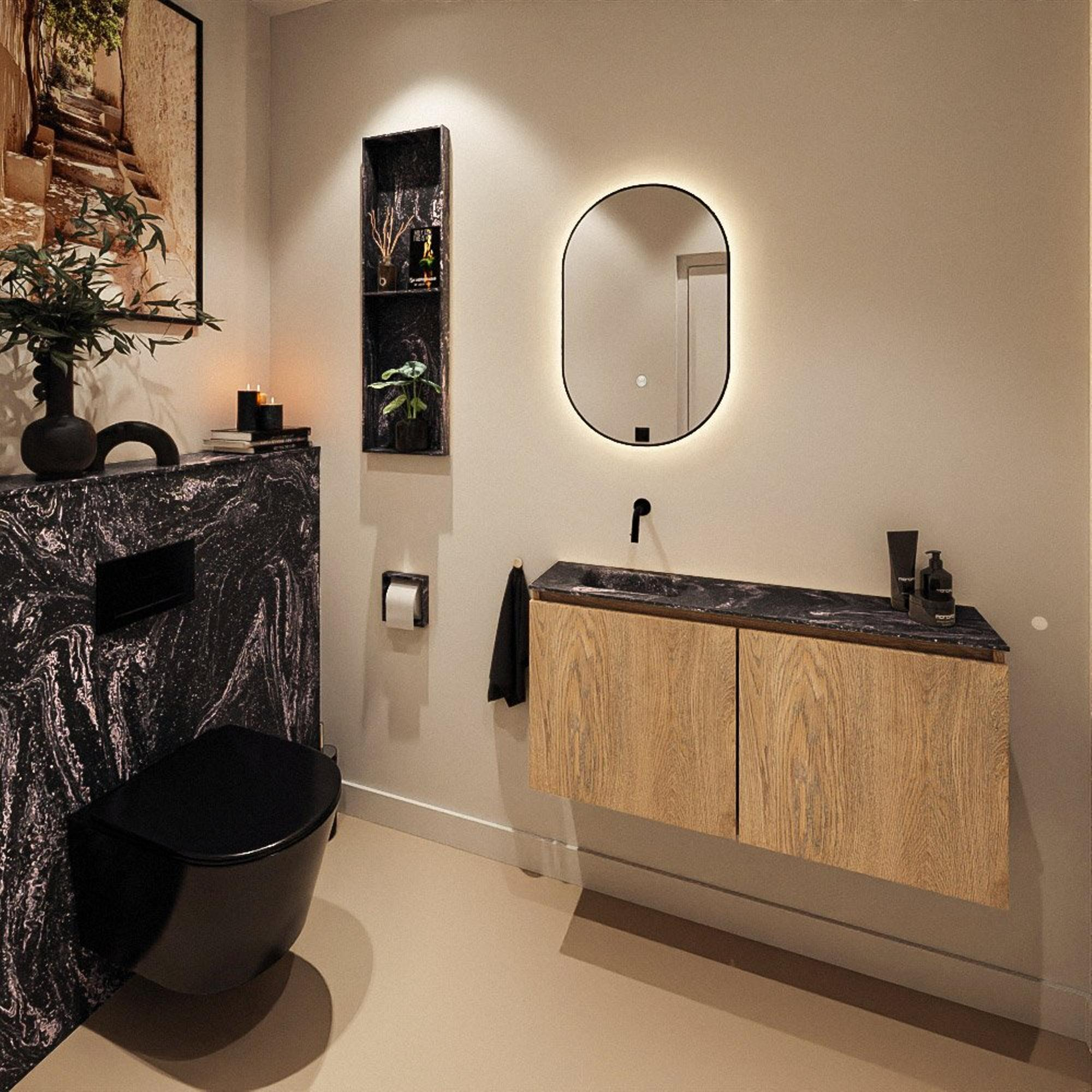 MONDIAZ TURE-DLUX 100cm toiletmeubel Washed Oak. EDEN wastafel Lava positie links. Zonder kraangat.