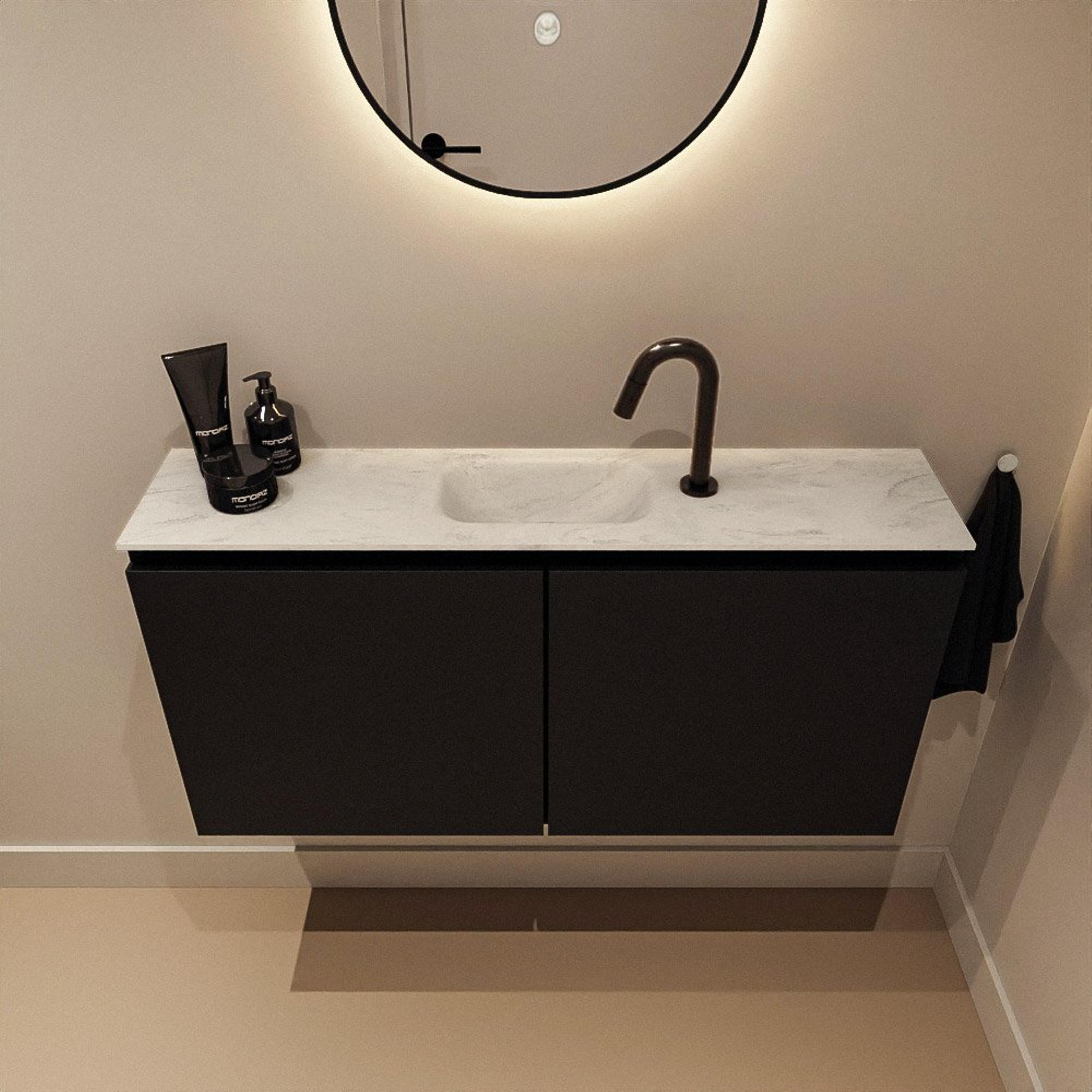 MONDIAZ TURE-DLUX 100cm toiletmeubel Urban. EDEN wastafel Opalo positie midden. Met 1 kraangat.