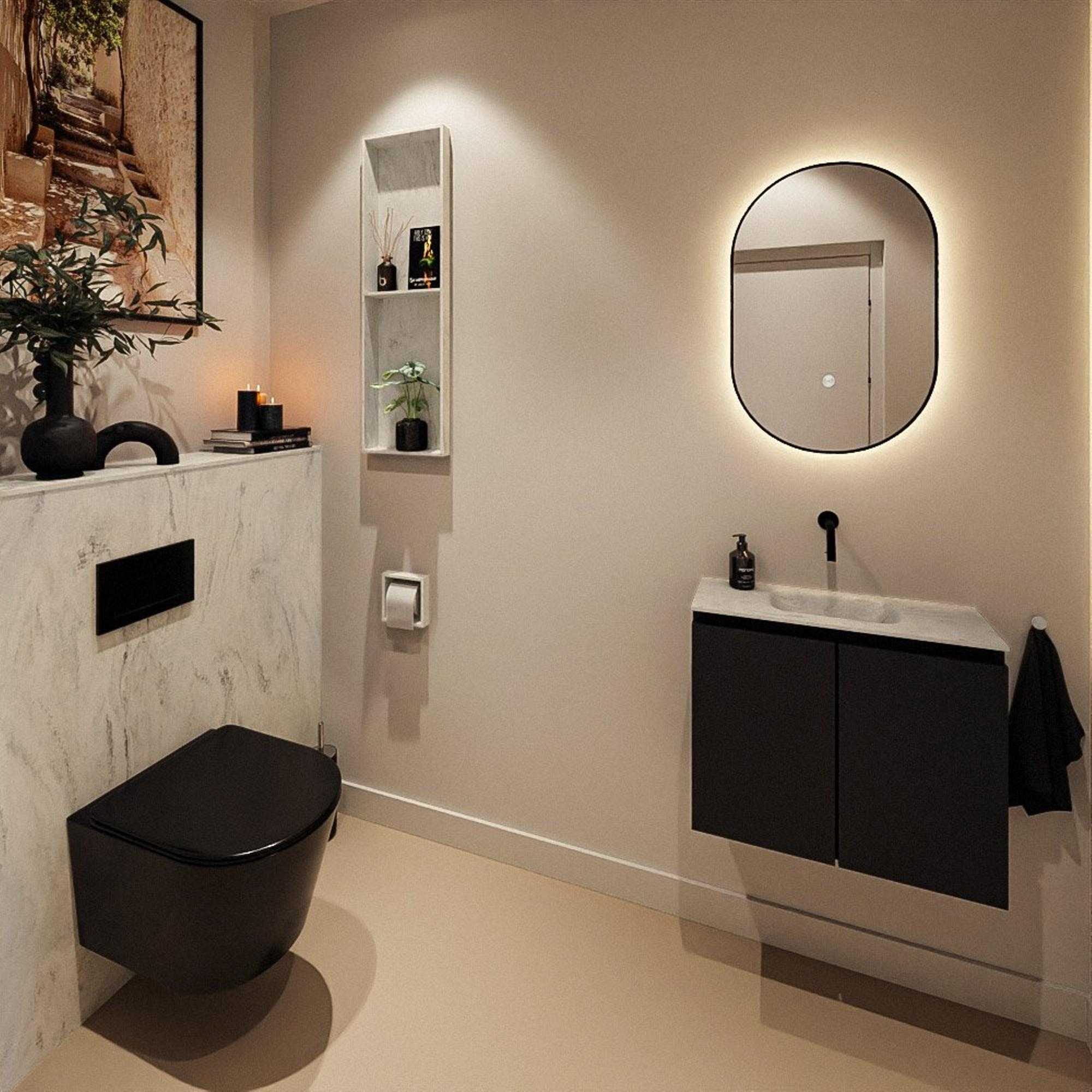 MONDIAZ TURE-DLUX 60cm toiletmeubel Urban. EDEN wastafel Opalo positie midden. Zonder kraangat.