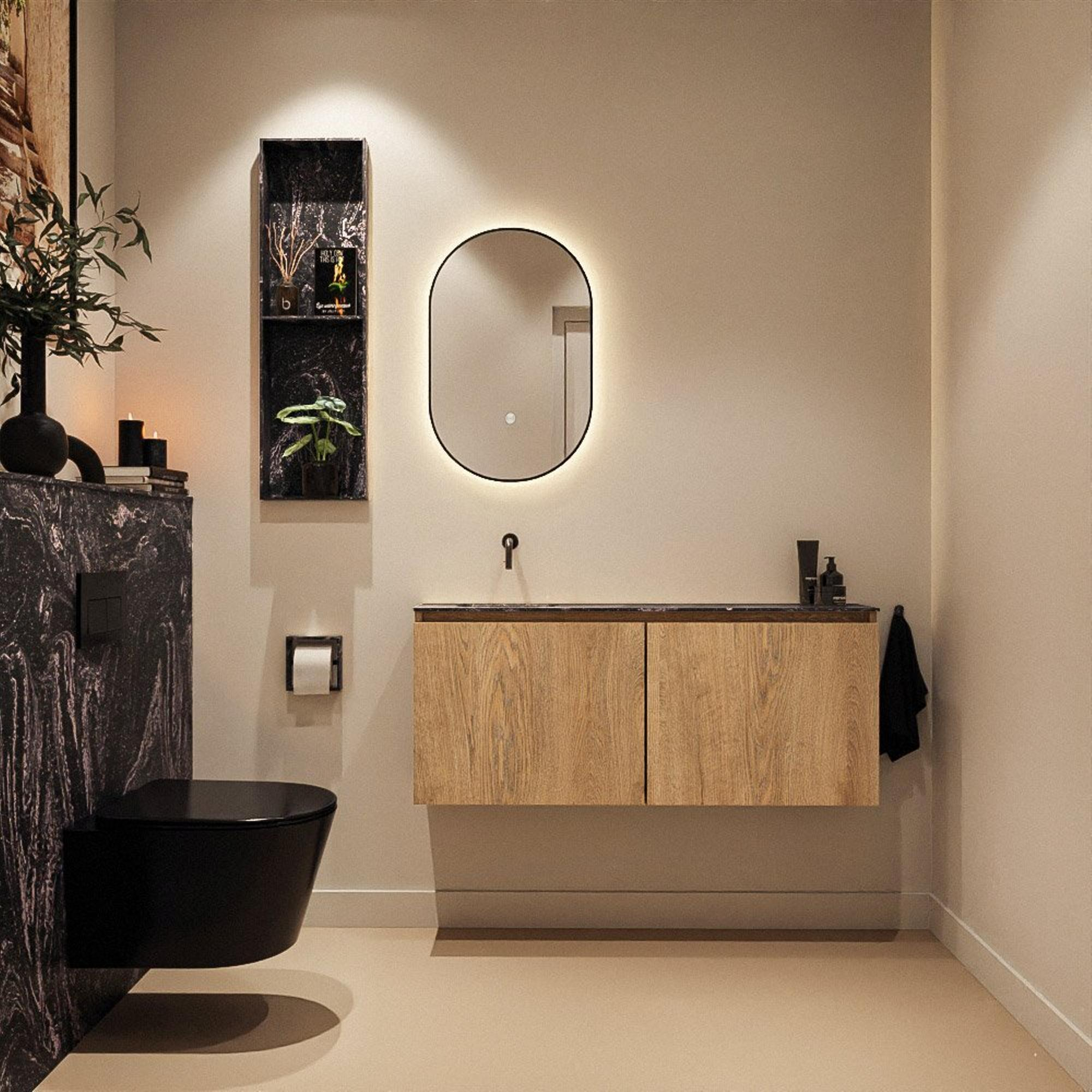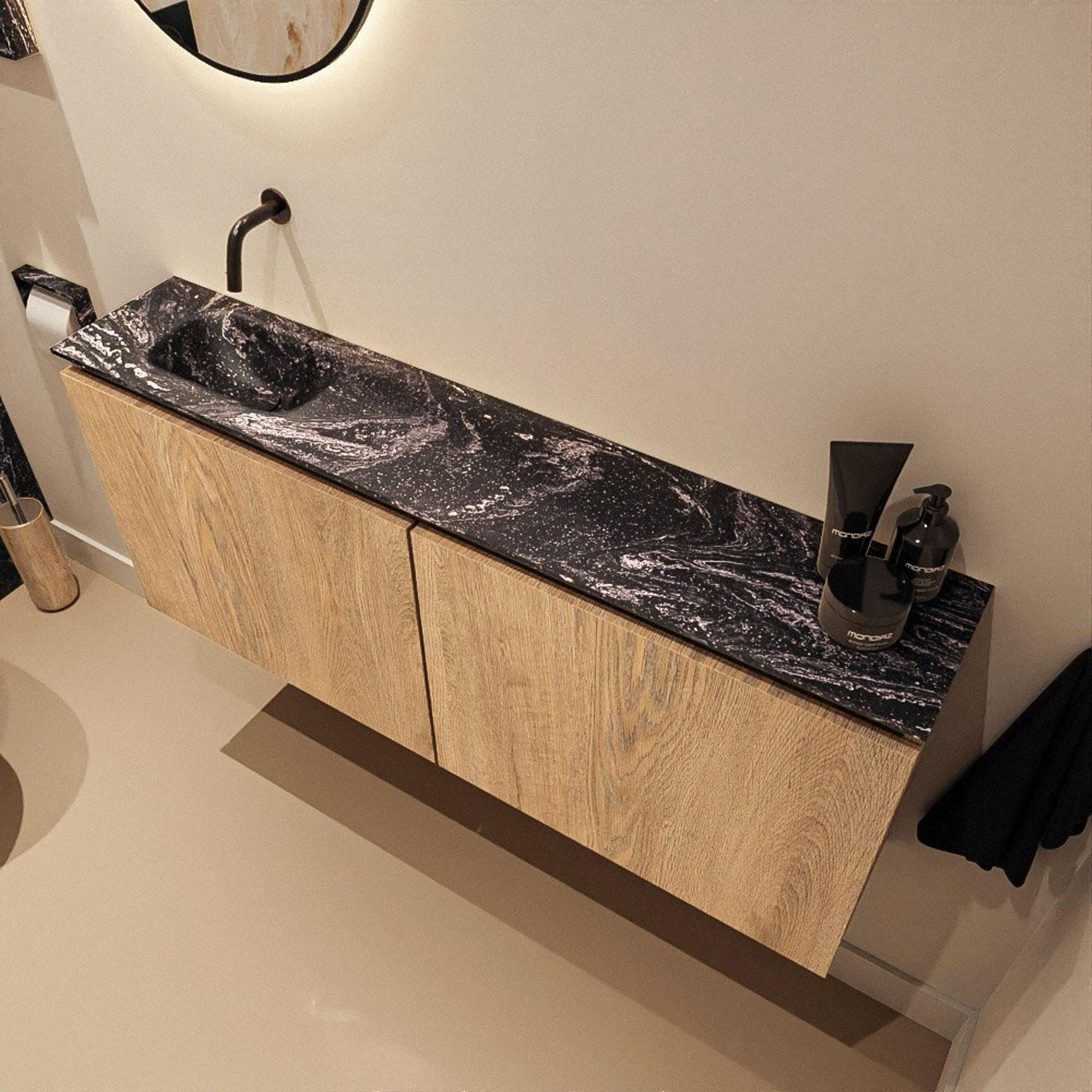 MONDIAZ TURE-DLUX 120cm toiletmeubel Washed Oak. EDEN wastafel Lava positie links. Zonder kraangat.